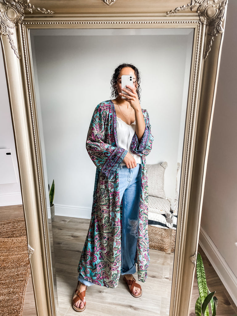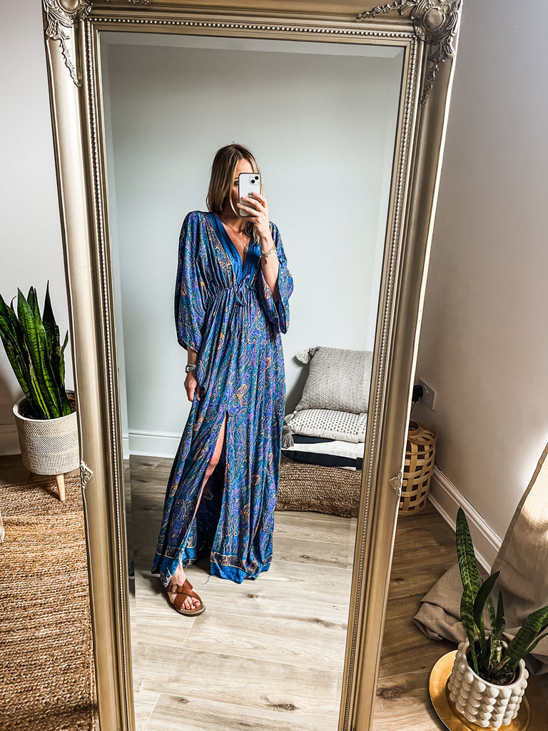 Paisley Batwing Sleeve Front Split Maxi Dress