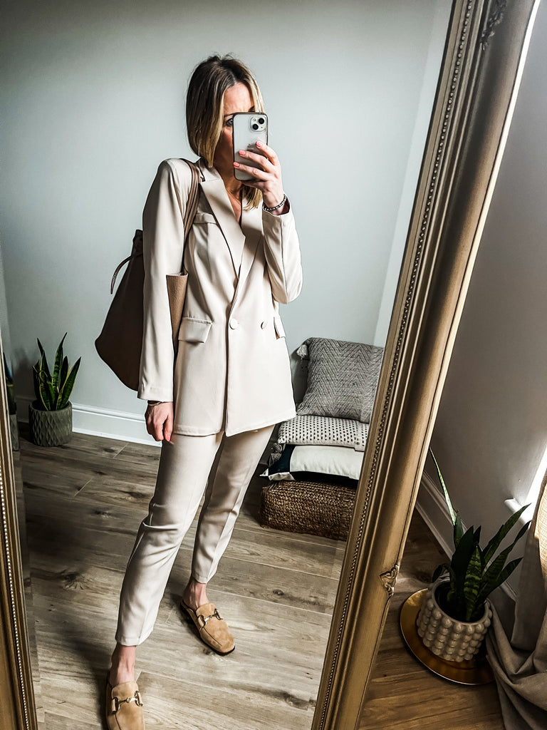This outfit is ideal for the transitional season. It provides warmth when temperatures drop and breathable comfort on warmer days, resulting in a chic and functional look for day to night wear.