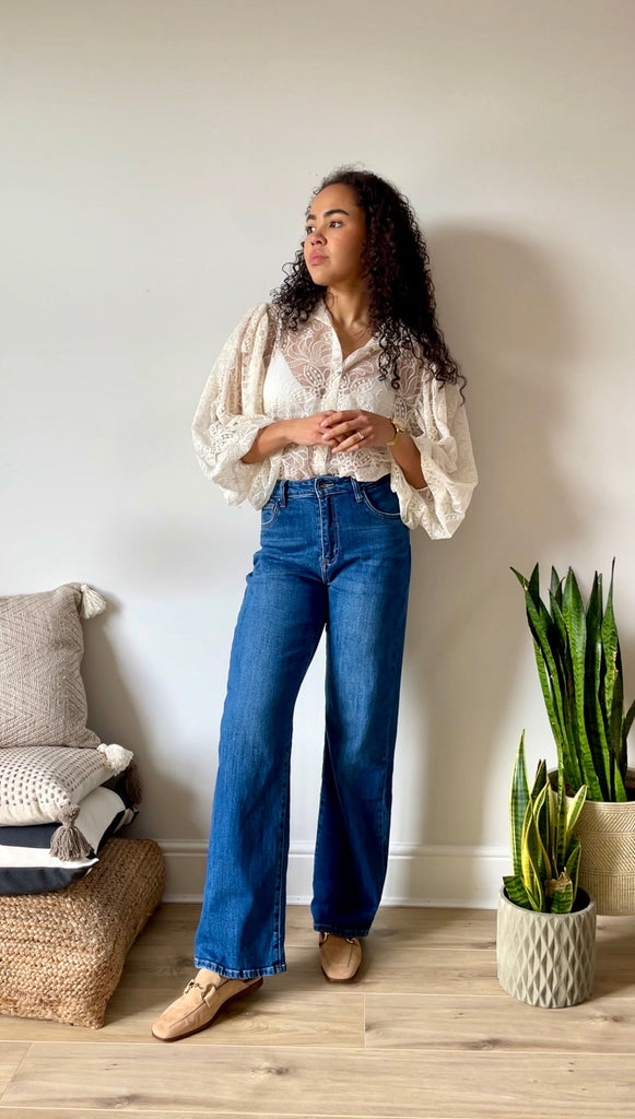 The blouse is light and breezy and can be layered with a jacket, while the jeans offer comfort and coverage, and the mules add a stylish touch to keep your feet comfortable and cool.
