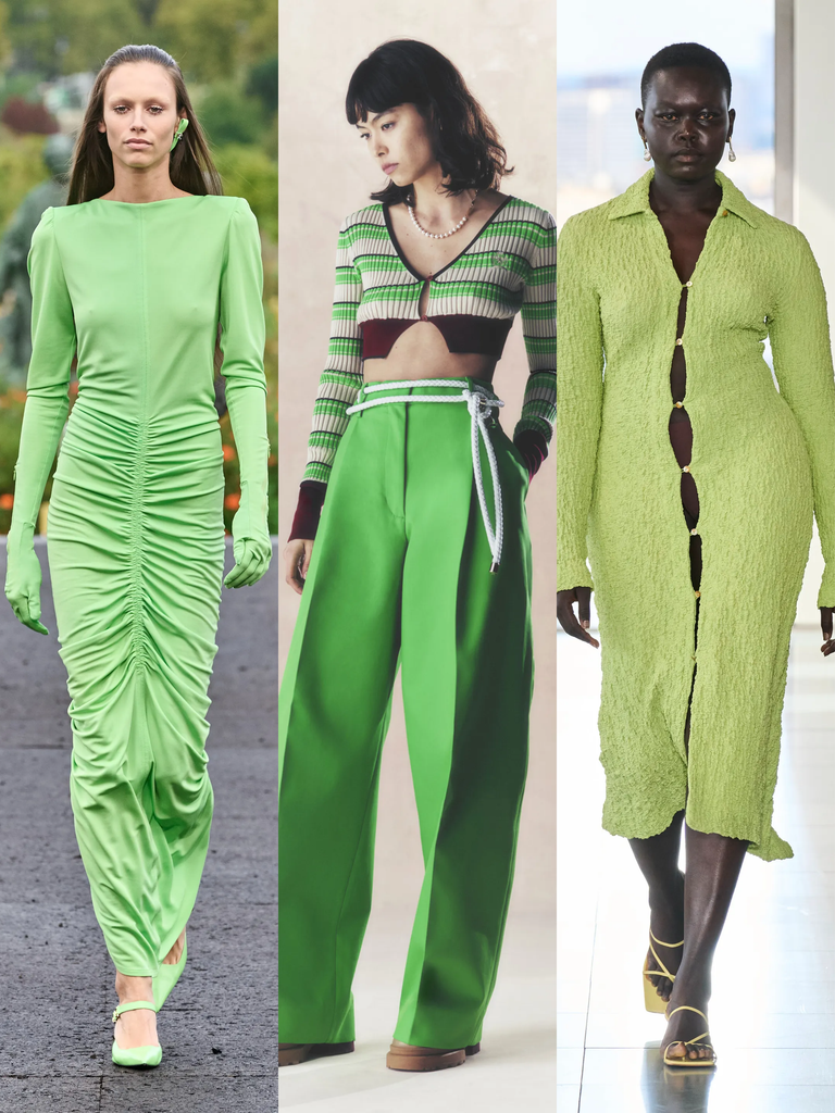 One of the colours for the season is lime green, this bright pop of colour is great for going into the brighter months. You can get started on this trend with green knitwear, that you can layer now and will work going into Spring. If this colour isn’t for you try different variations of green or maybe just keep it to the accessories with a lime green handbag.