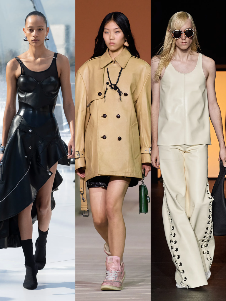Now it may seem strange to have a heavier fabric like leather trending for spring and summer but when you play around with the colours and styles you can make it work for that time of the year – plus living in the UK means we have more rain than sunshine. Style this trend by going fora cool biker look or create a more sophisticated tailored look with a leather blazer.