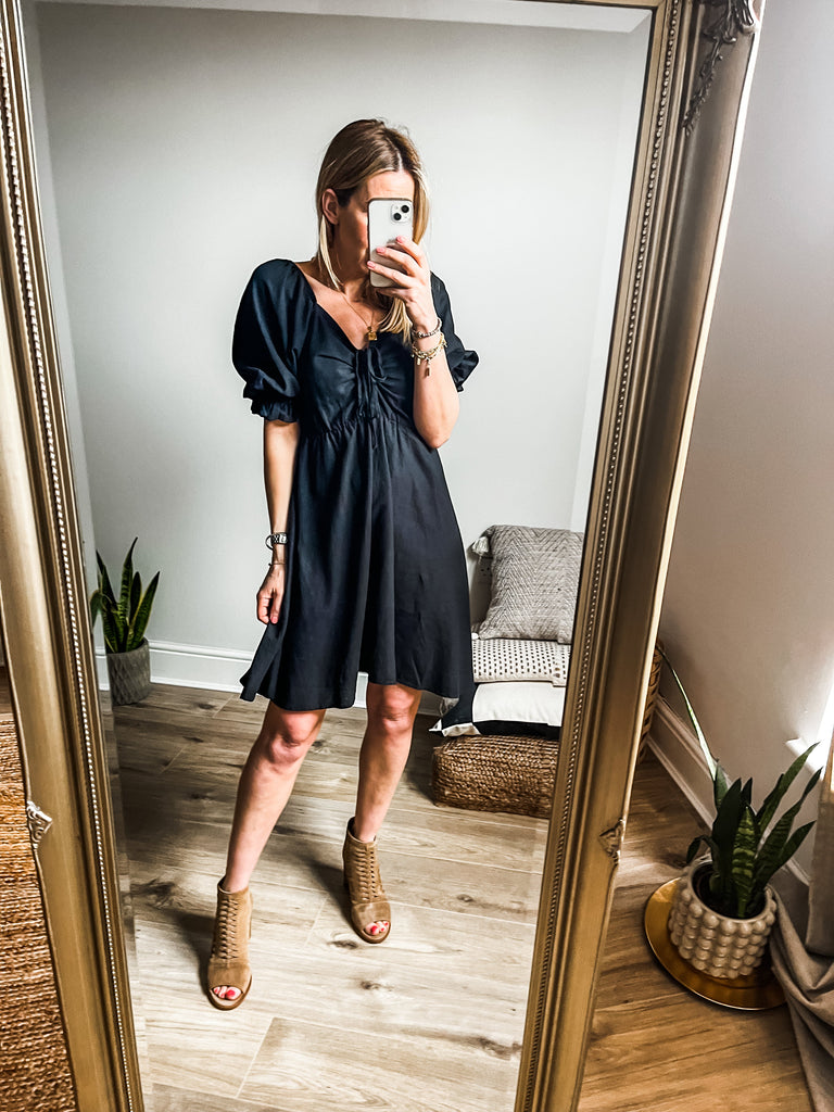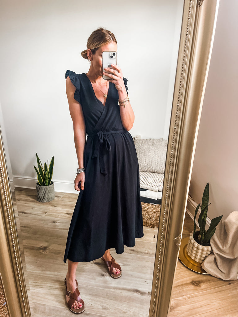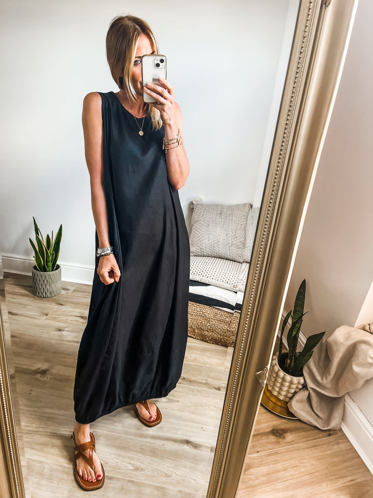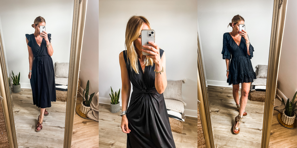 For a sophisticated and effortless all-black summer look, consider opting for a dress. A dynamic shaped dress can create an elevated and considered silhouette, and is suitable for any occasion, whether it's a day in the city or a beach holiday. Pair it with black sandals and sunglasses for a sleek and polished appearance. With the right dress and accessories, an all-black outfit can make a bold statement without being too overwhelming, and can keep you looking cool and fashionable even in the hottest weather.