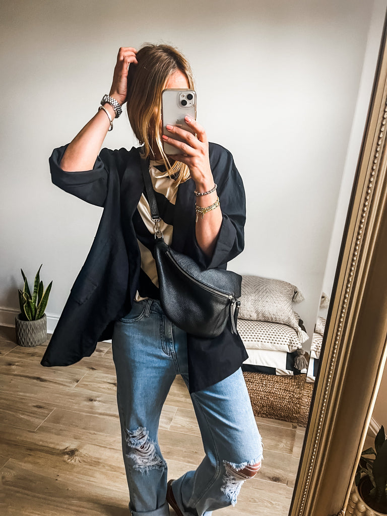 Wearing all-black is more than just a convenient choice for getting dressed in the morning; it creates a powerful and simple look that exudes confidence and sophistication. To complete the all-black outfit, be sure to choose accessories that match the aesthetic. Consider chunky sandals or minimal mules for footwear, and opt for black handbags and sunglasses to add a touch of mystery. Layering gold jewelry can add an extra touch of luxury to the polished outfit. By staying consistent with black accessories, you can enhance the overall impact of the all-black ensemble and achieve a bold and stylish look.