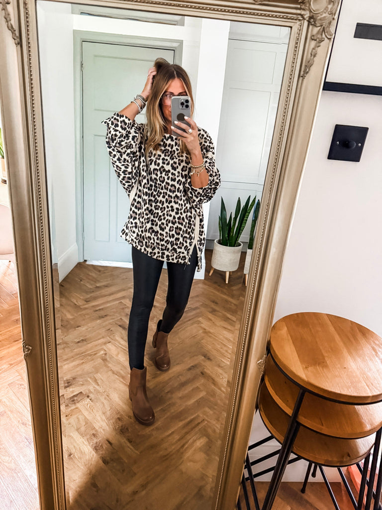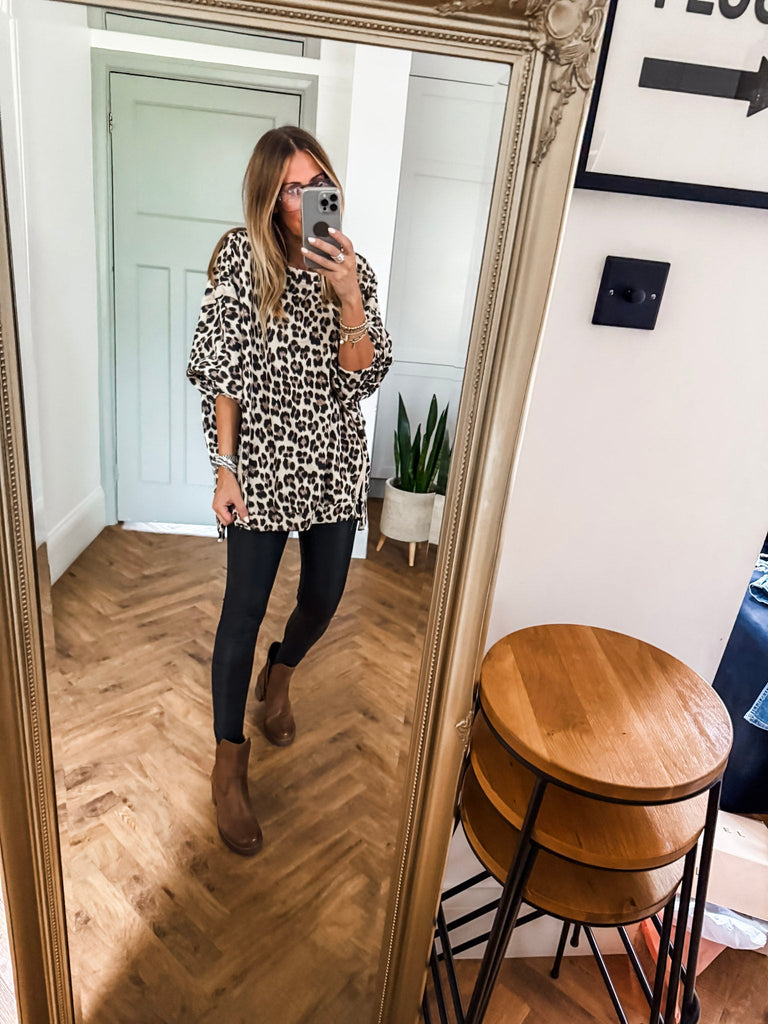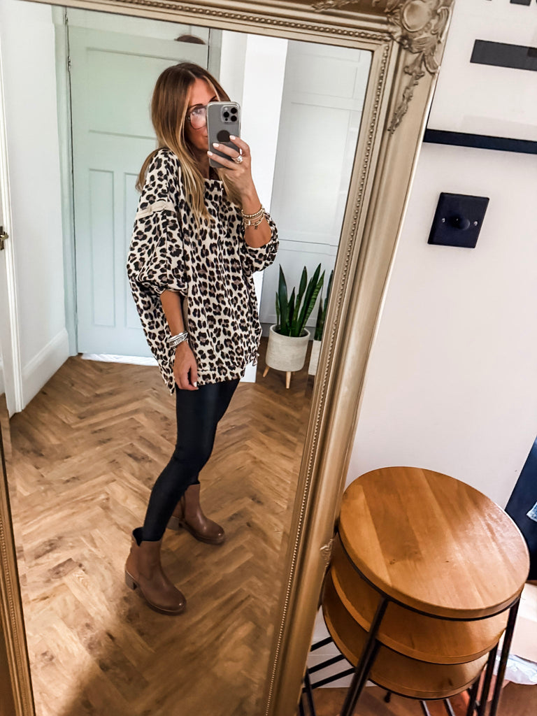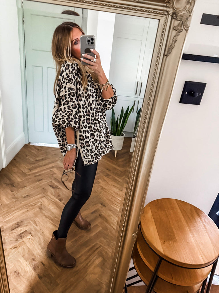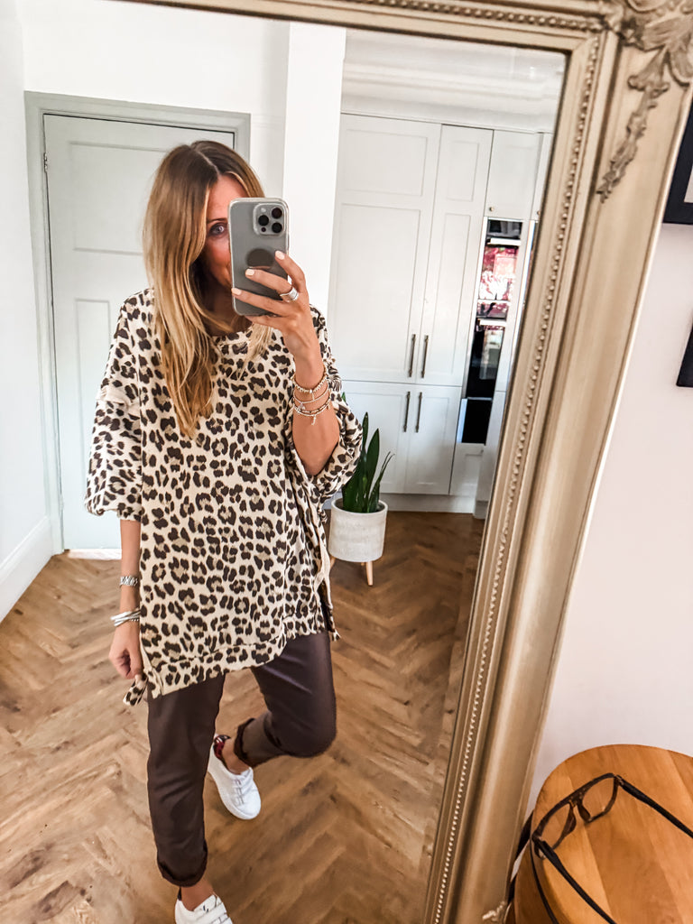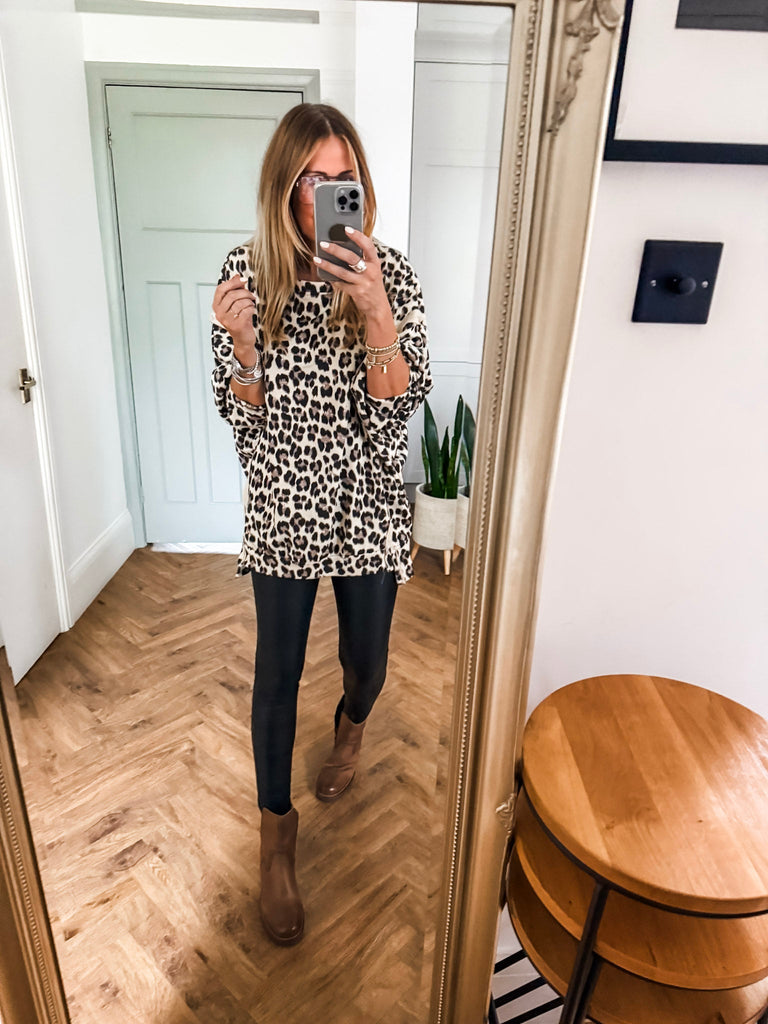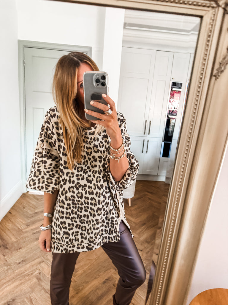 Stay effortlessly stylish in our Leopard Print Sweat Tunic. Its loose fit and long sleeves offer all-day comfort, while the edgy leopard print elevates any outfit. Upgrade your wardrobe with this versatile essential for a laid-back yet trendy look!