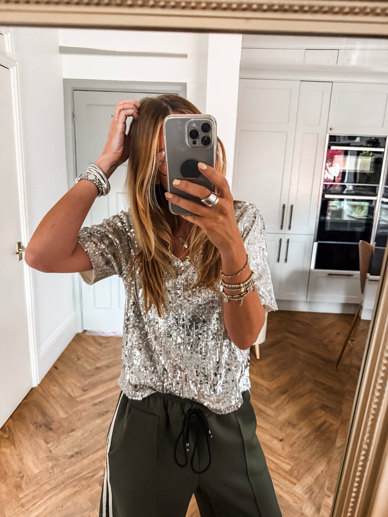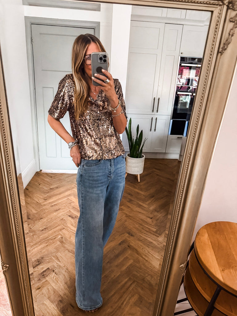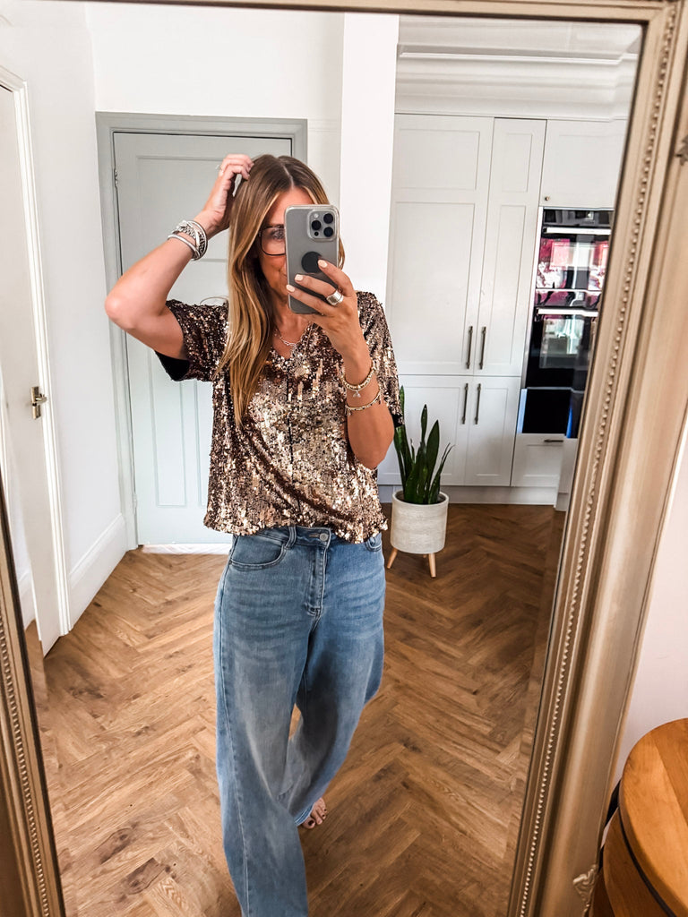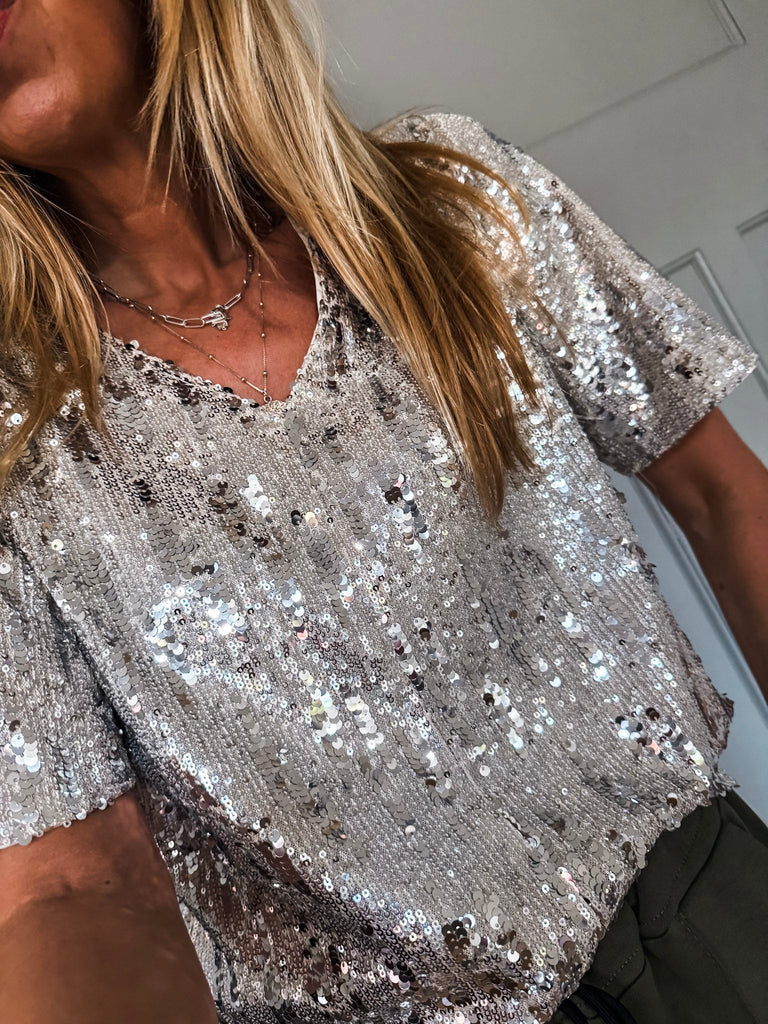 Shine in this V Neck Sequin Top , designed to catch every eye. With short sleeves, fully lined and a flattering V neckline, it blends comfort with bold style. Perfect for nights out, festivals, or any moment you want to make a statement.