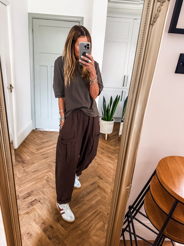 Discover a whole new level of style and comfort with Pocket front turn up Trousers! Crafted from super soft cotton, these trousers offer a relaxed fit and feature pockets to the front. The balloon shape, elasticated waist and cropped length mean that these trousers are not only stylish, but also offer superior movement and a flattering silhouette.