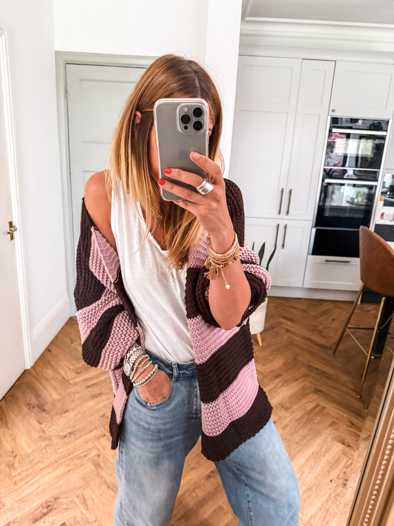 Striped Open Cardigan