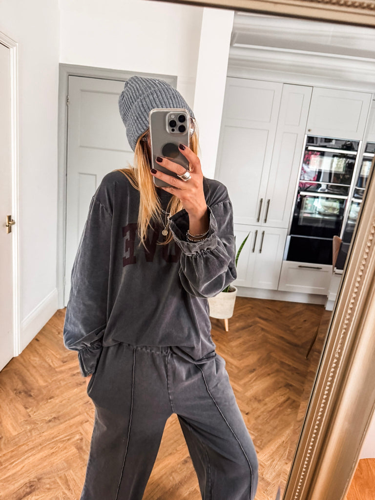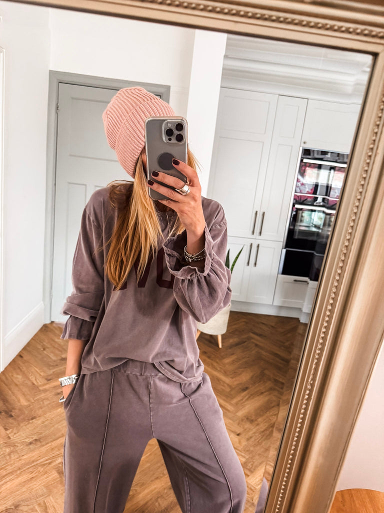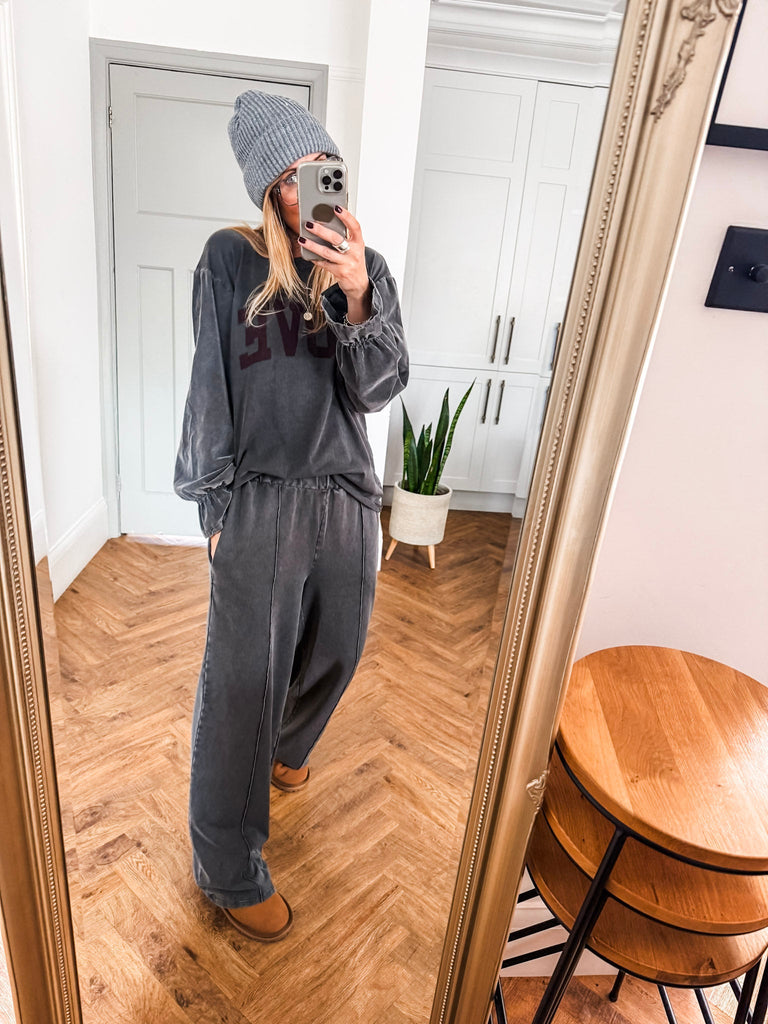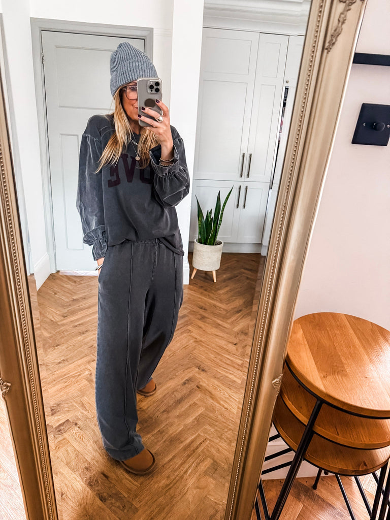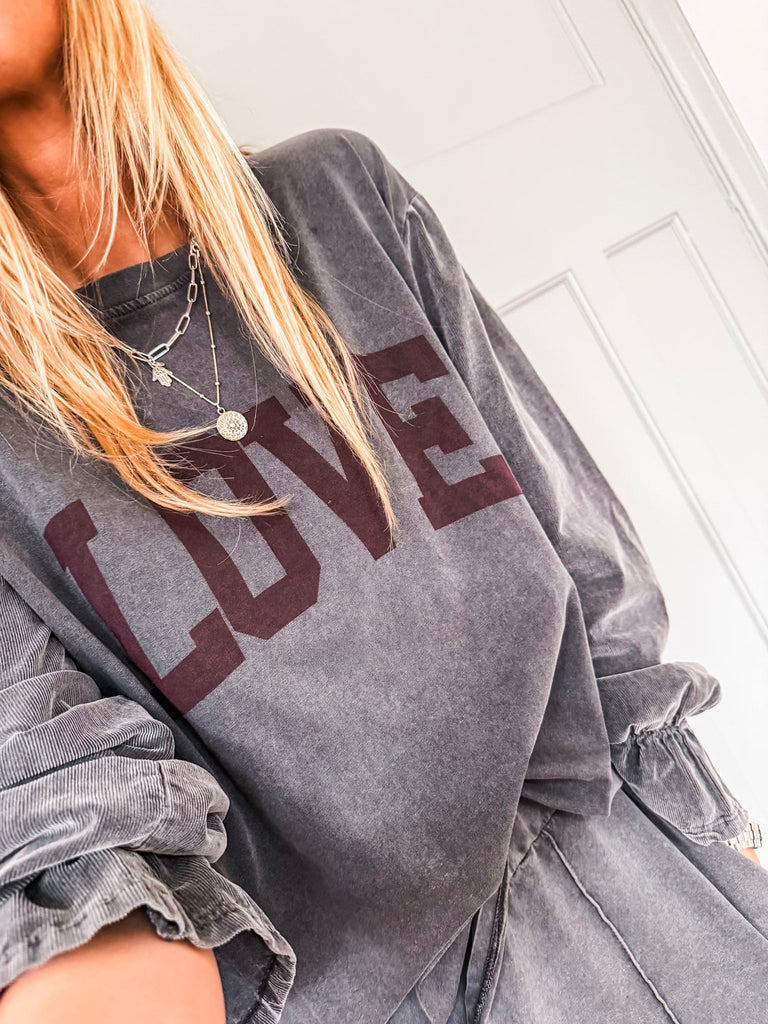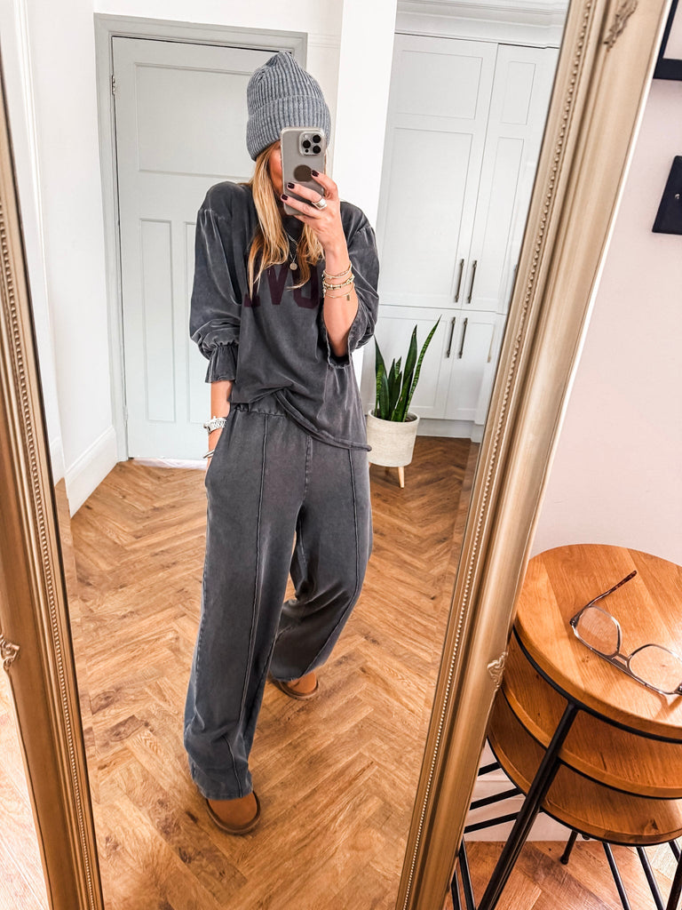 Effortless style meets playful charm in the Cord Sleeve Love Top. With textured cord frill sleeves and a bold love slogan, it adds a cool edge to your everyday look. A relaxed fit and classic neckline keep it timeless yet effortlessly chic. Matching Trousers available.