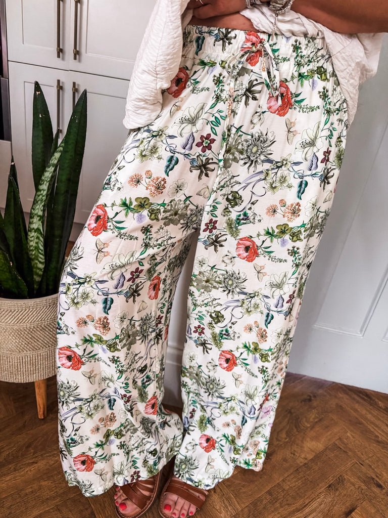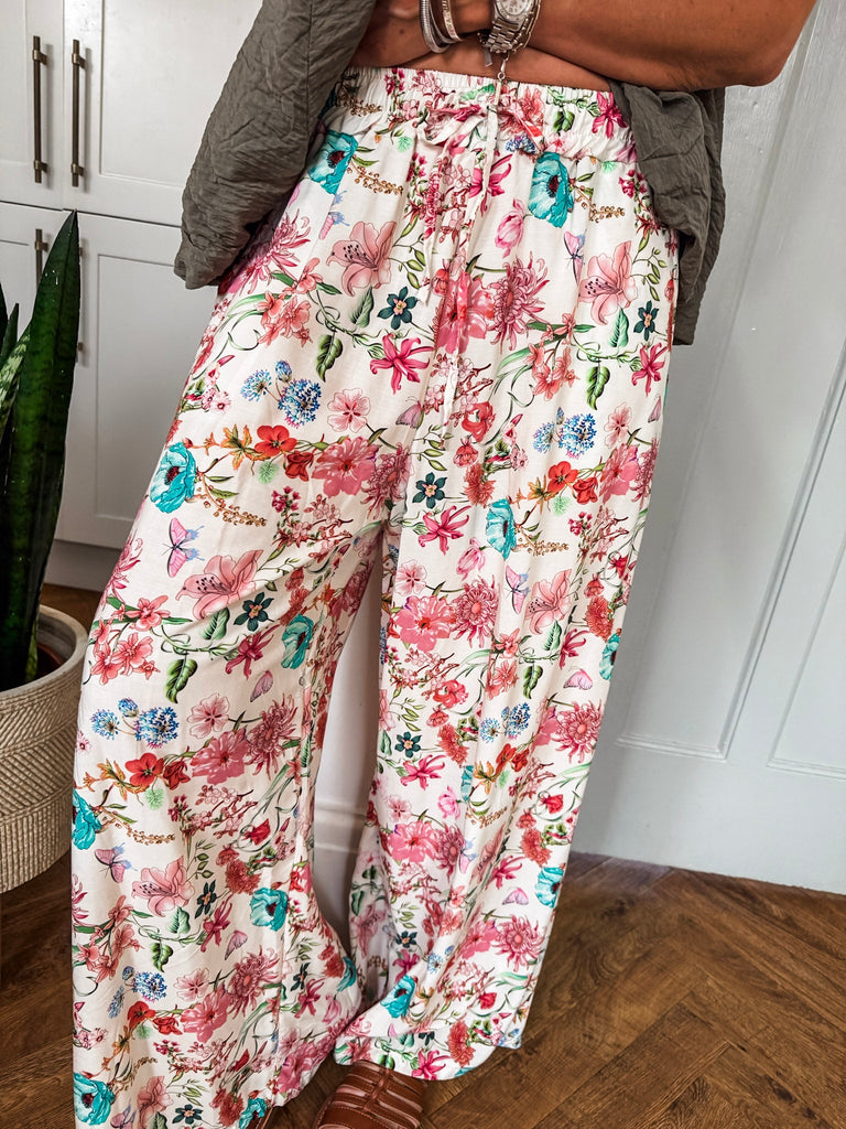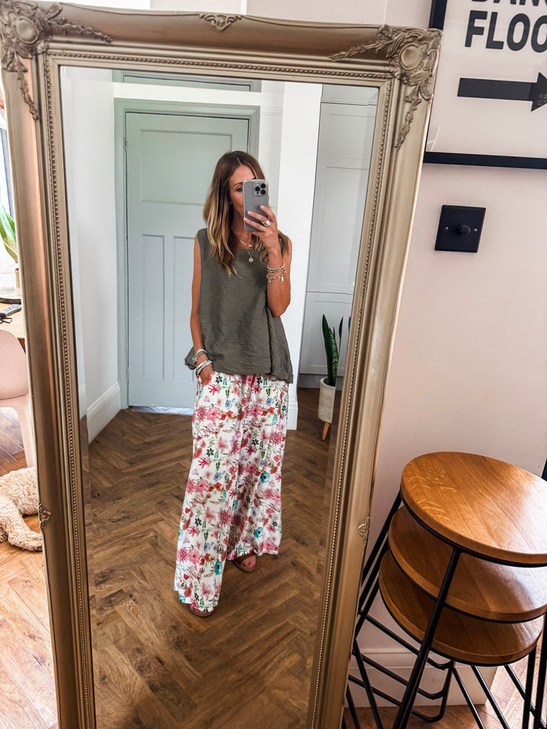 These Floral Wide Leg Trousers blend bold style with effortless comfort. With a vibrant print, fluid wide legs, and an adjustable drawstring waist, they move with you and flatter every step. Finished with practical pockets, they’re your go-to for easy elegance—day or night.