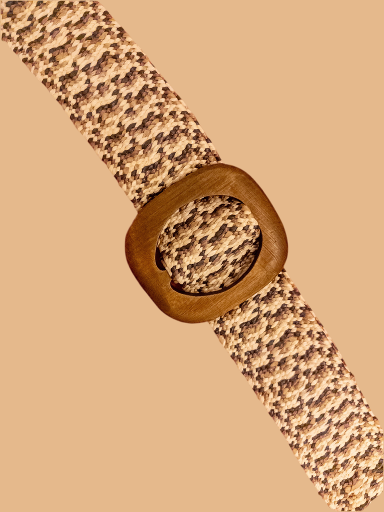 Style your look with the Woven Round Wood Buckle Belt—where texture meets natural charm. The detailed weave and wooden buckle add effortless style with a relaxed, earthy edge. A versatile finishing touch for any summer outfit.