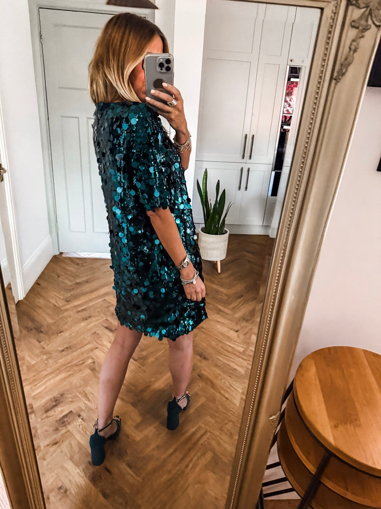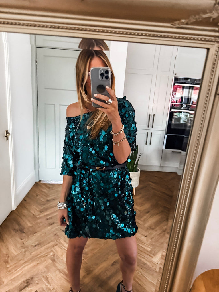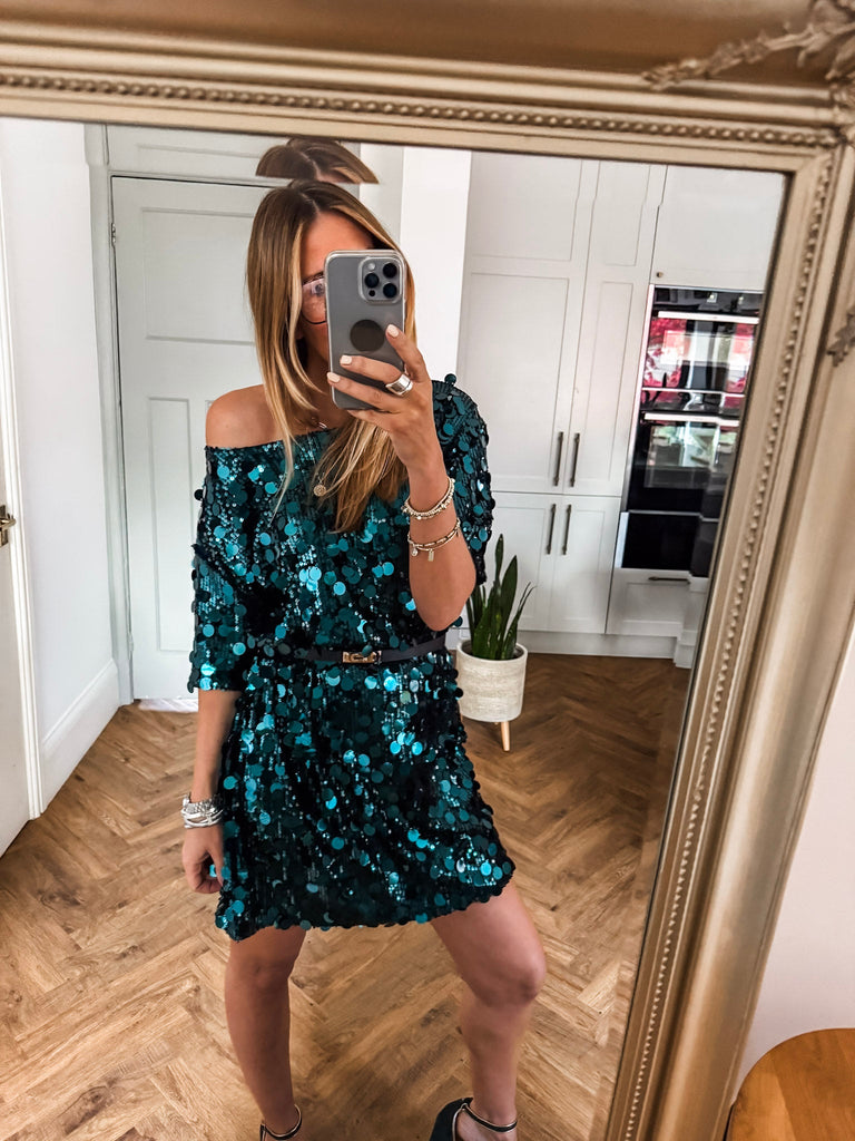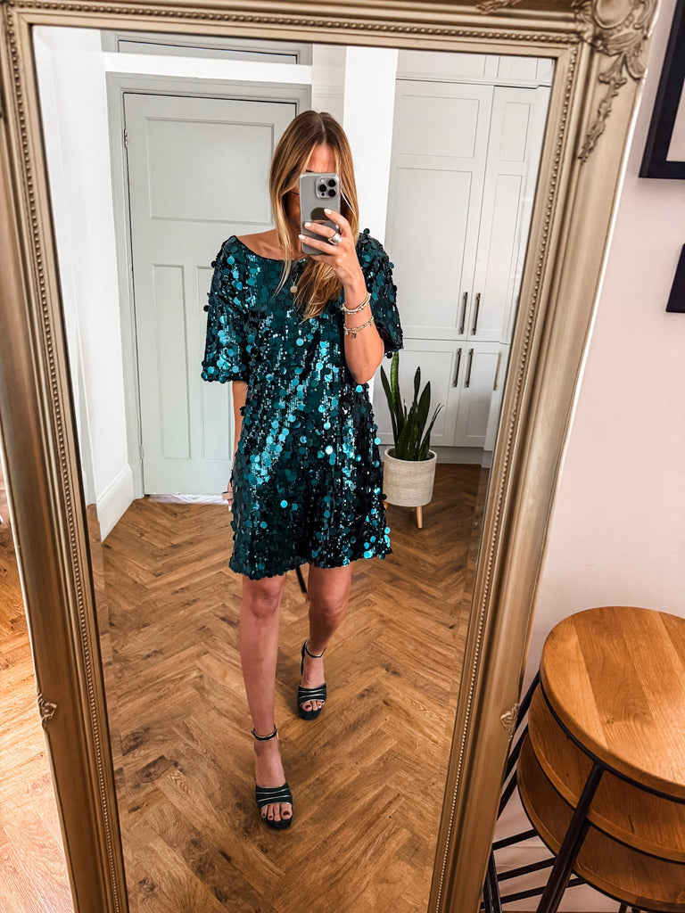 Shine with confidence in this dazzling disc sequin mini dress. Designed with a figure-flattering elasticated waist and effortless short sleeves, it combines comfort with statement style. Finished with a sleek hem for a touch of modern allure, it’s made to turn heads at every occasion. Looks fab paired with a belt and your favourite heels!
