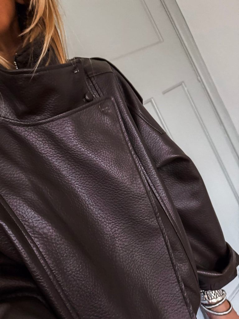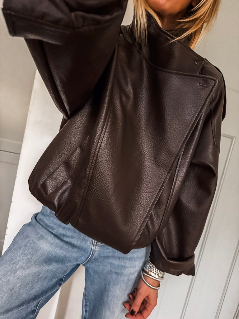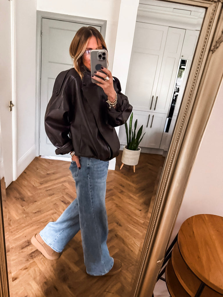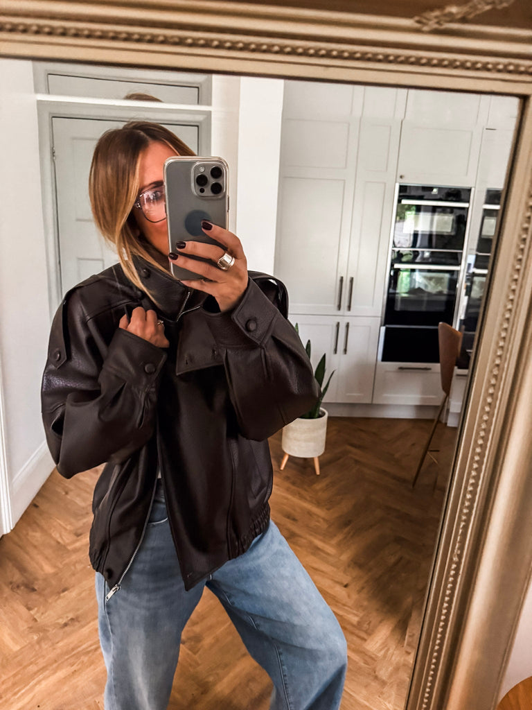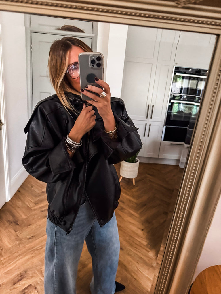Channel effortless cool in this Funnel Neck Faux Leather Jacket. With its funnel collar, elasticated hem, and sleek finish, it delivers timeless style with a modern edge. Perfect for styling any look, from casual days to nights out. Very cool & on trend!