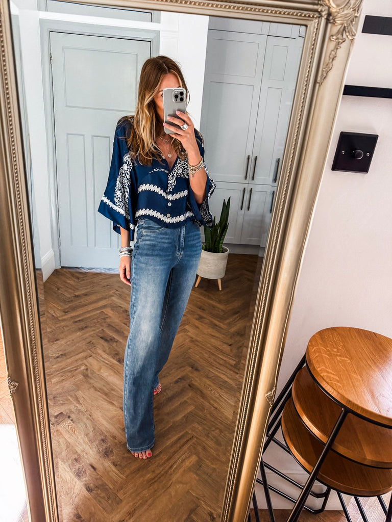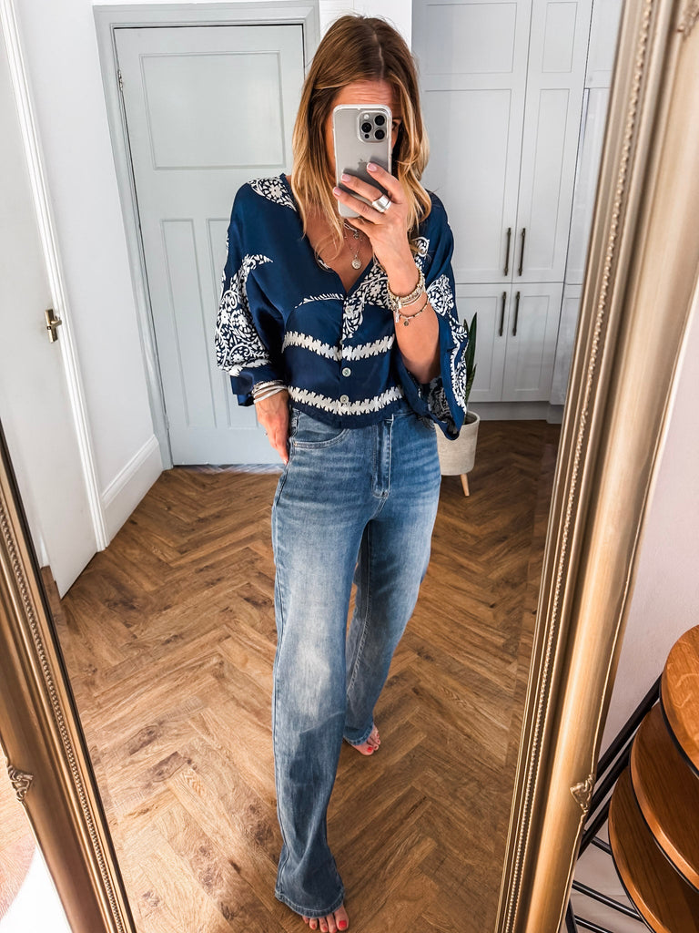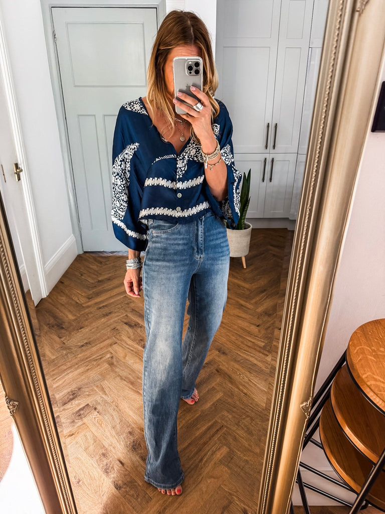 Pair these jeans with a tucked-in tee and classic white sneakers for a relaxed daytime look. Layer with an oversized blazer and ankle boots to elevate your outfit for evening. Accessorize with a belt bag and statement sunglasses for a modern, polished finish.