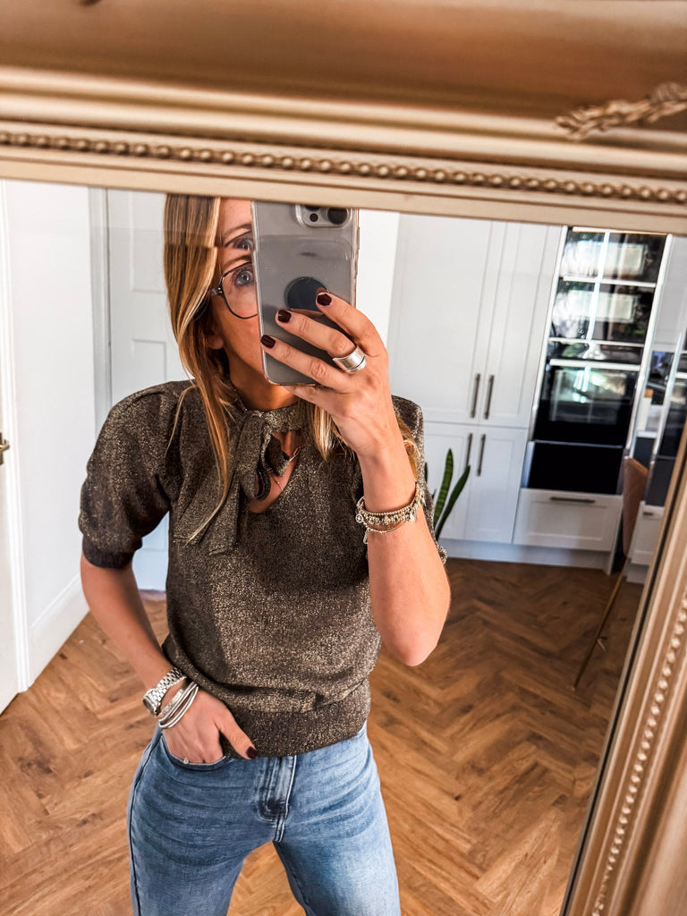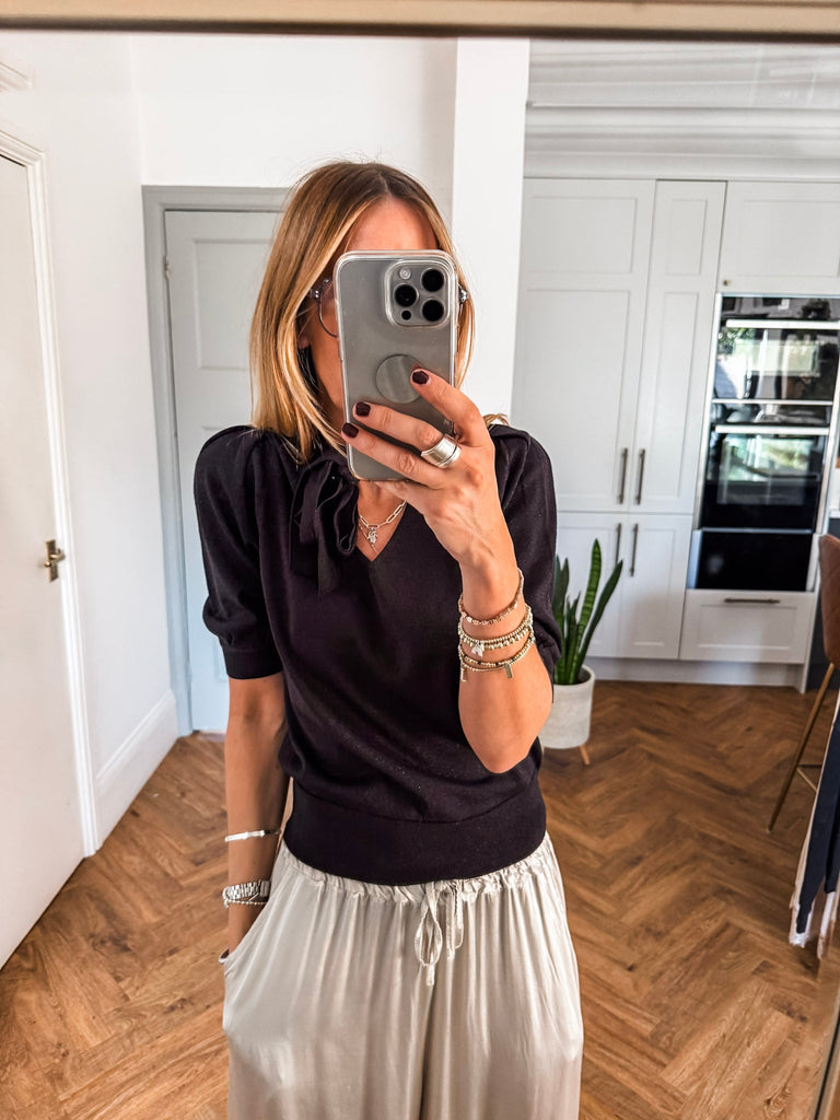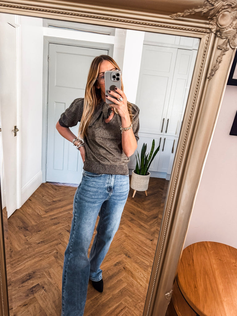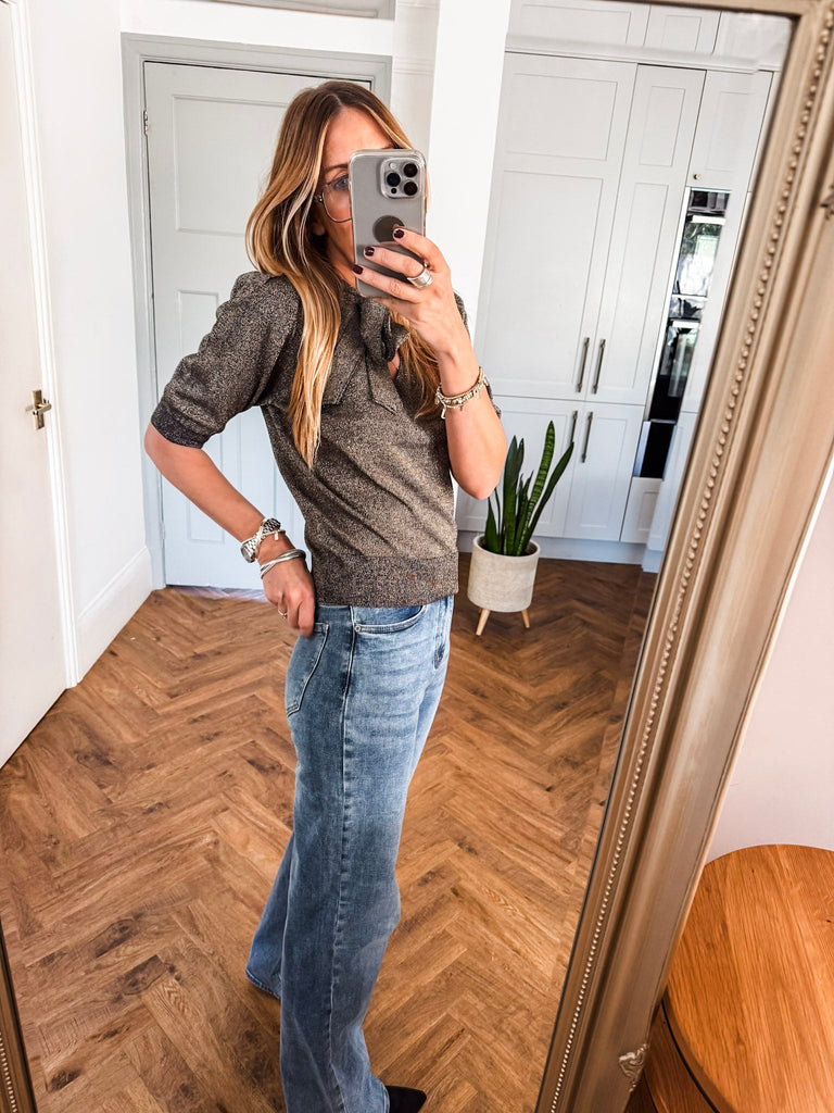 We love the bow jumper for its bold texture and effortlessly flattering fit. The fine glitter print adds a unique edge while staying polished and versatile. It’s the perfect piece to add instant impact to your wardrobe with minimal effort.