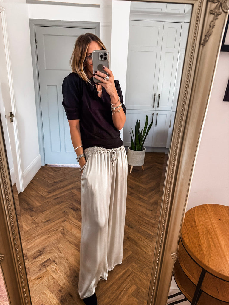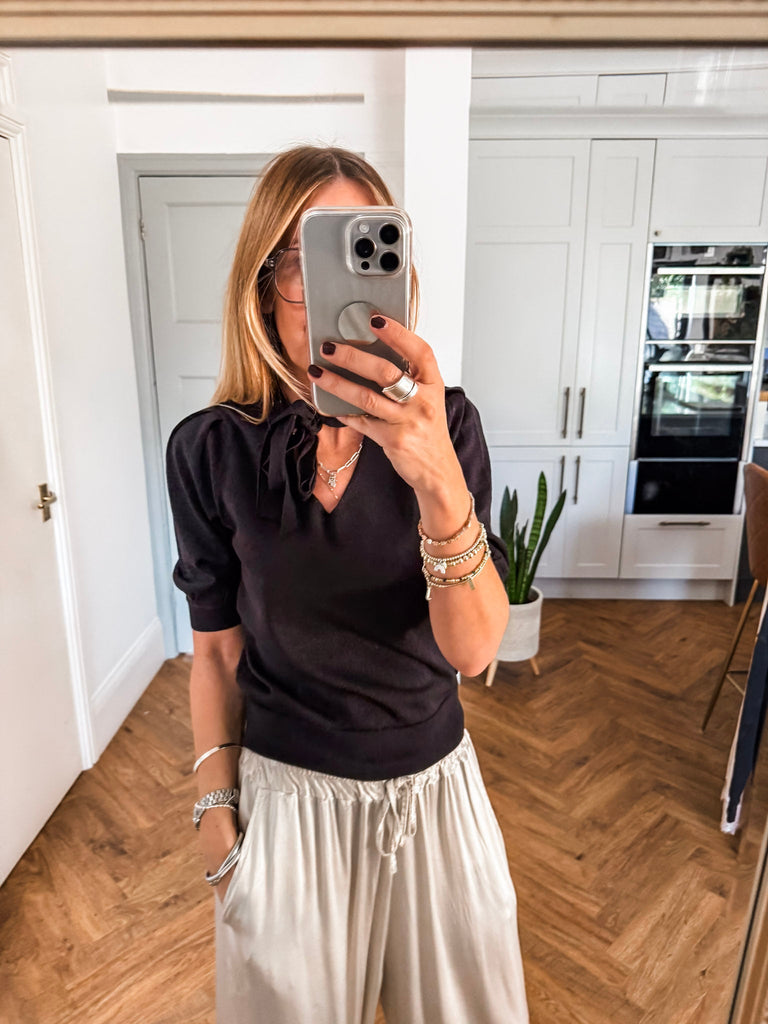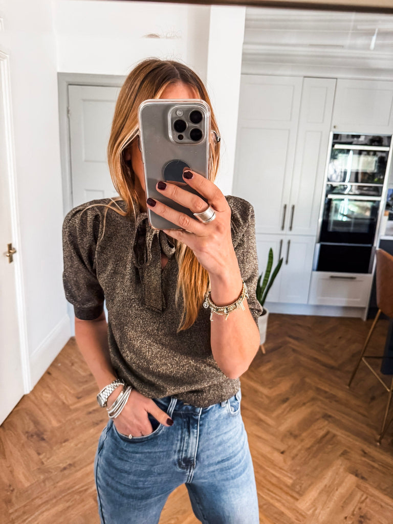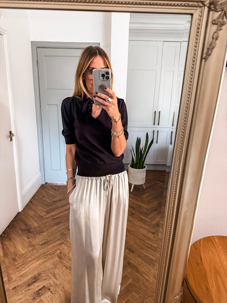 We love the bow jumper for its bold texture and effortlessly flattering fit. The fine glitter print adds a unique edge while staying polished and versatile. It’s the perfect piece to add instant impact to your wardrobe with minimal effort.