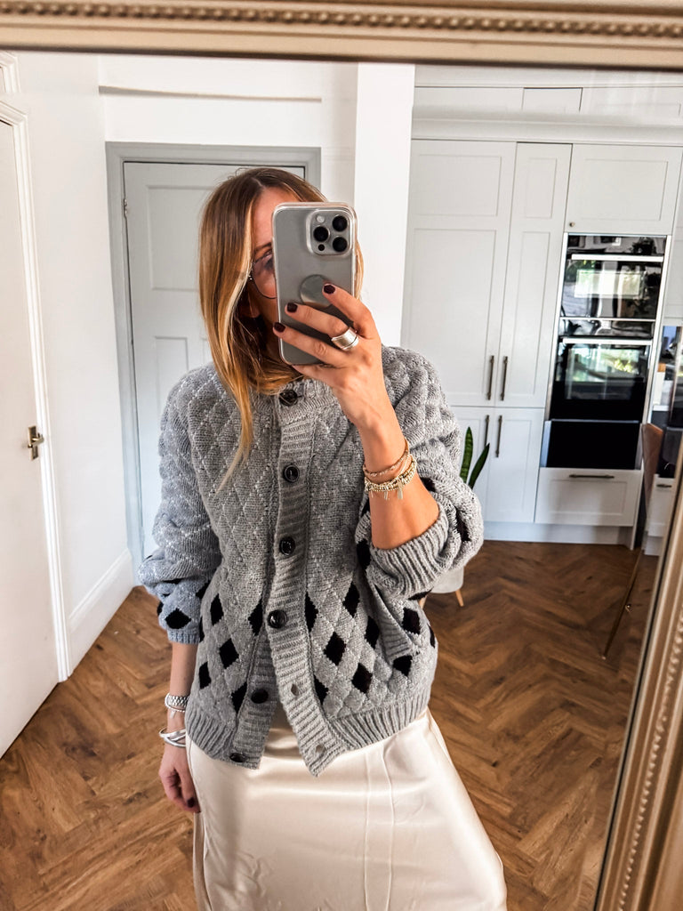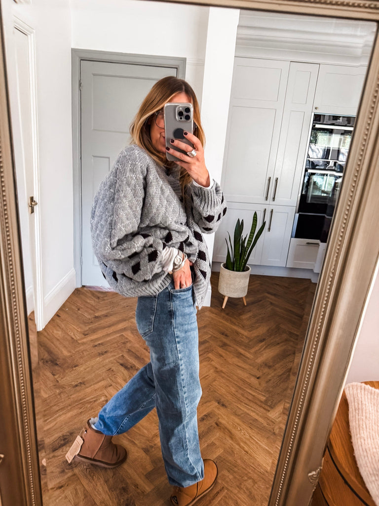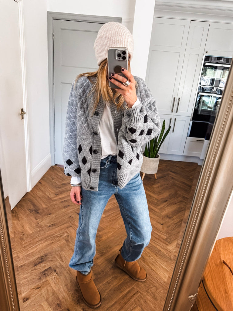 Beautiful chunky diamond knit. Stay effortlessly cozy with the ICHI Cortana Cardigan, crafted in a chunky knit for laid-back style and warmth. Featuring long sleeves, functional pockets, and a versatile button-up front, it’s made for easy layering. The perfect throw-on piece for cool, casual days.