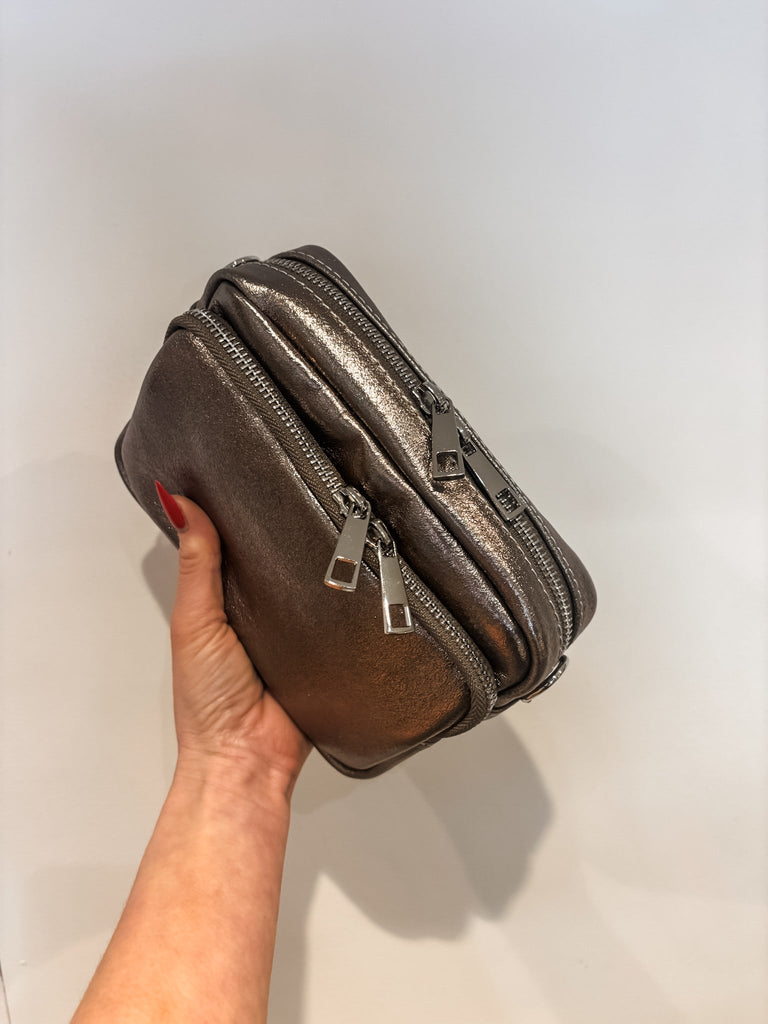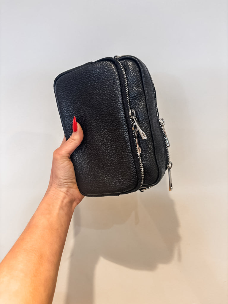 A leather bag in the perfect size for all your essentials while still looking super stylish. The bag comes with a detachable crossbody strap for ease when out and about, and includes an internal open side pocket. Wear this day to day or dress up for a night out.