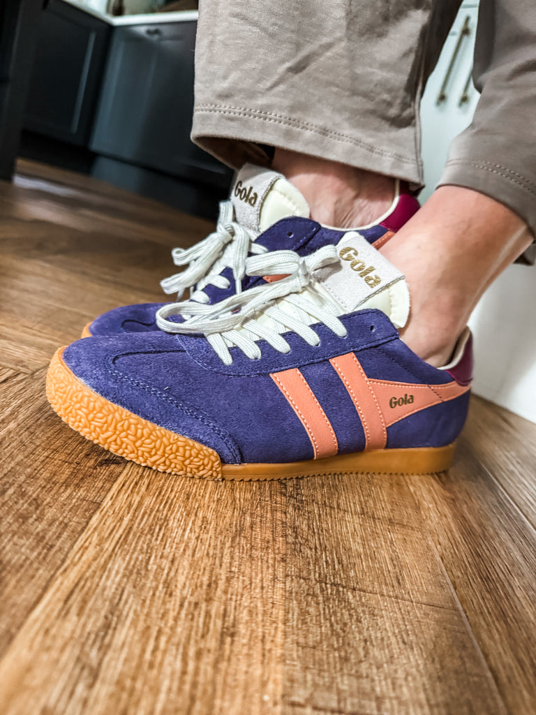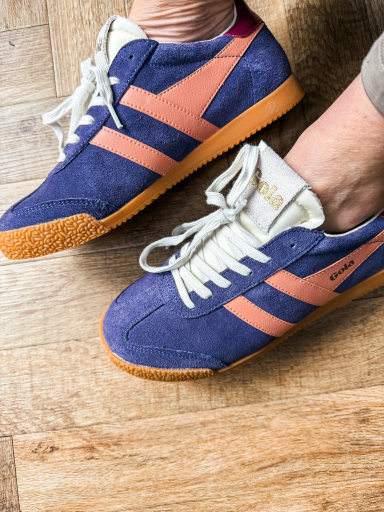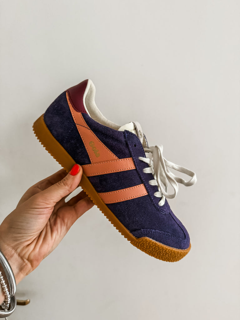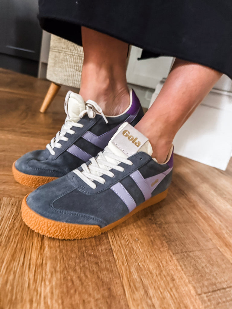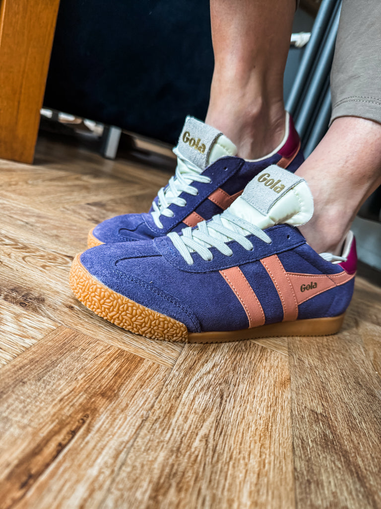 When it comes to heritage sports Gola has a tale to tell and Elan’s roots as a multi-purpose training shoe can authentically make this claim. An old school gum sole, in just the right vintage tone, is reminiscent of days in the school gym, whilst striking colour combinations such as this plum, terracotta and cerise, give a thoroughly modern looking women’s trainer. You’re not mistaken if you can see the resemblance to Gola’s flagship Harrier style, Elan is almost a twin but has an additional heel tab panel to give an extra colour pop. Selling out as quickly as we get them in, this is the hottest women’s Gola trainer of the season.