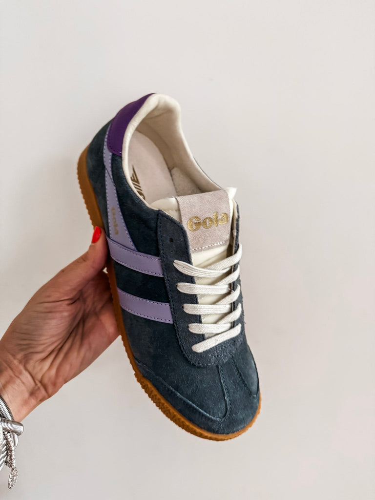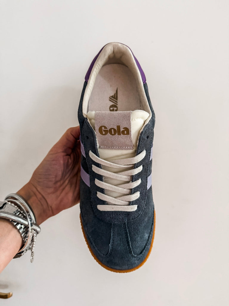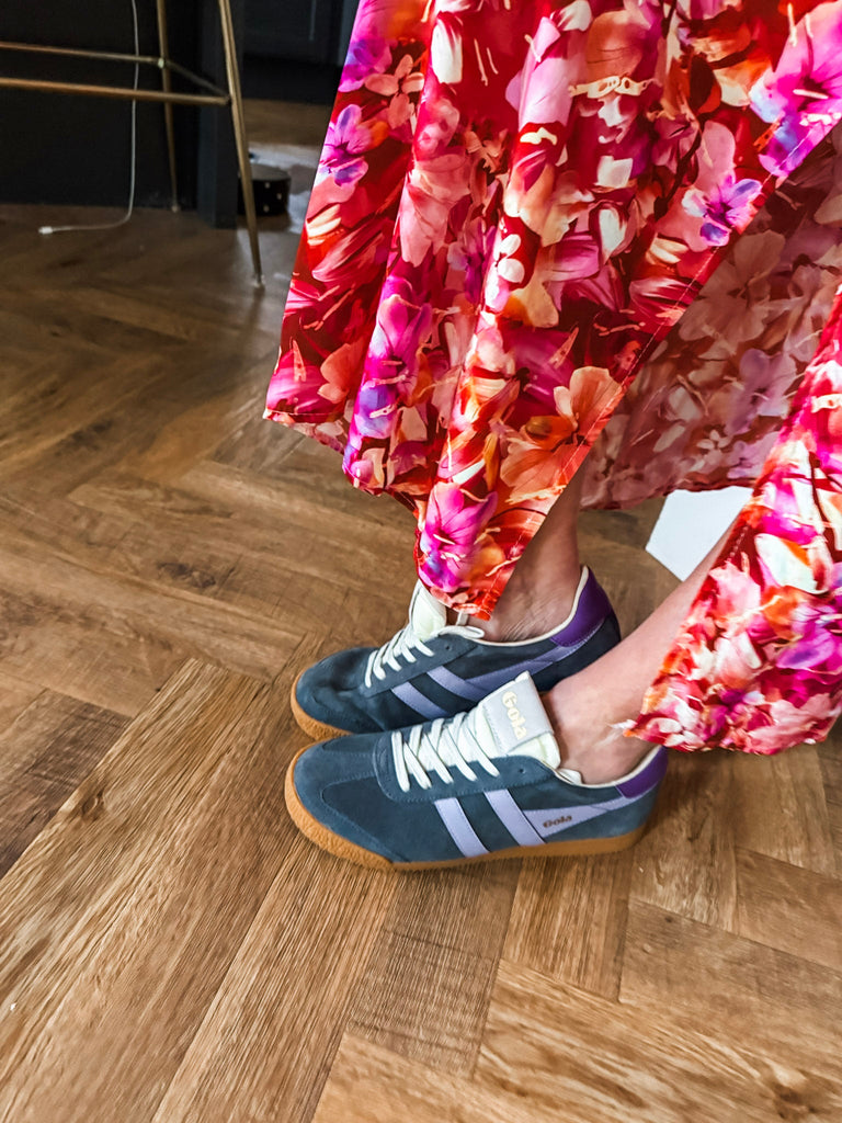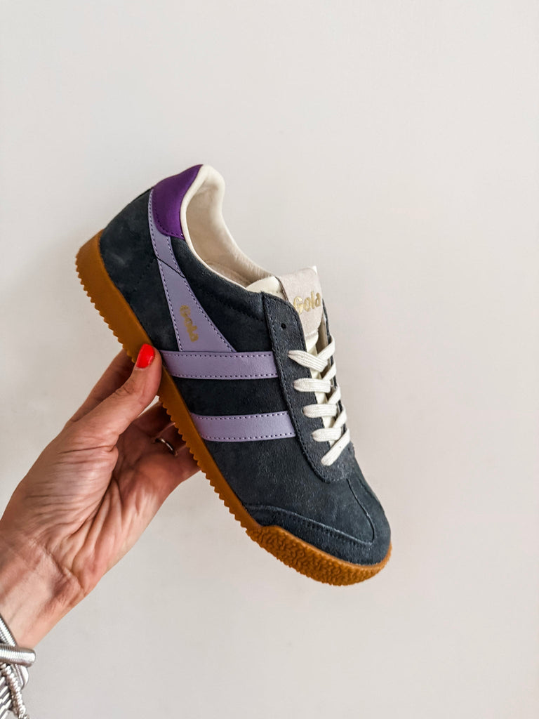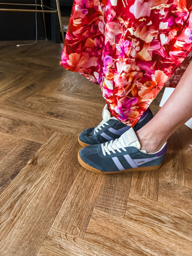 When it comes to heritage sports Gola has a tale to tell and Elan’s roots as a multi-purpose training shoe can authentically make this claim. An old school gum sole, in just the right vintage tone, is reminiscent of days in the school gym, whilst striking colour combinations such as this plum, terracotta and cerise, give a thoroughly modern looking women’s trainer. You’re not mistaken if you can see the resemblance to Gola’s flagship Harrier style, Elan is almost a twin but has an additional heel tab panel to give an extra colour pop. Selling out as quickly as we get them in, this is the hottest women’s Gola trainer of the season.