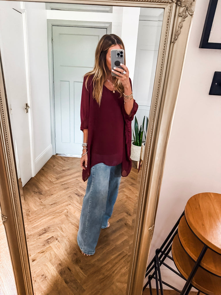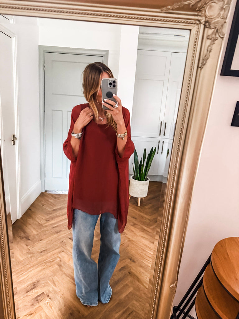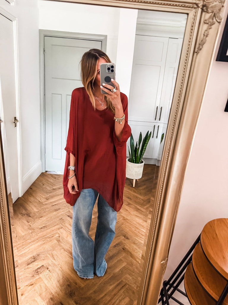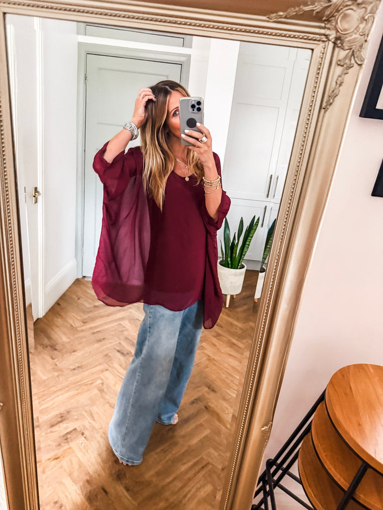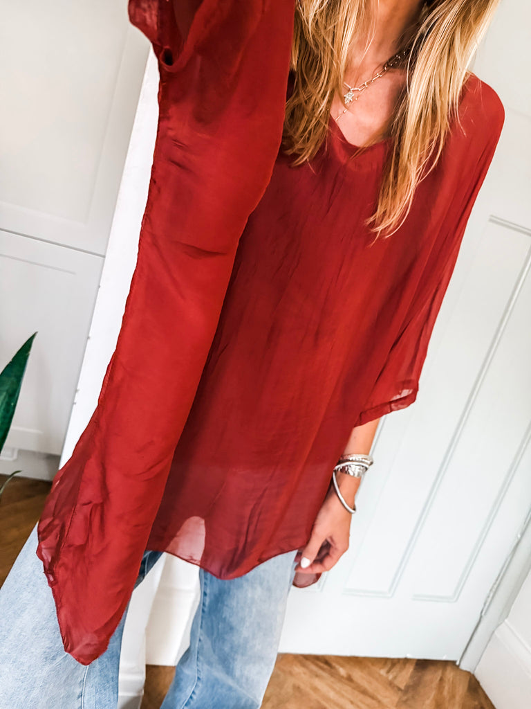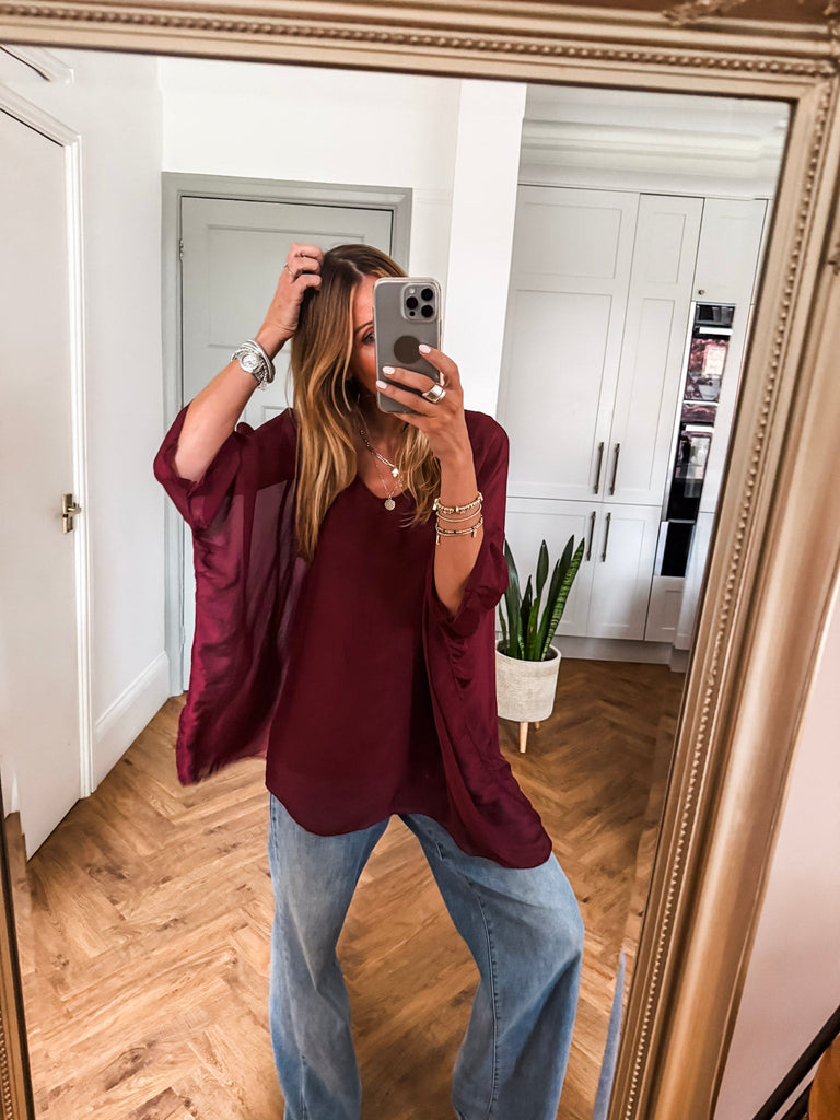 Breezy and elegant, the Waterfall Chiffon Top features sheer fabric and relaxed batwing sleeves for effortless movement. A soft lining adds comfort and coverage, while the fluid silhouette creates a striking yet easygoing look. Wear it solo or layered for versatile, day-to-night style.
