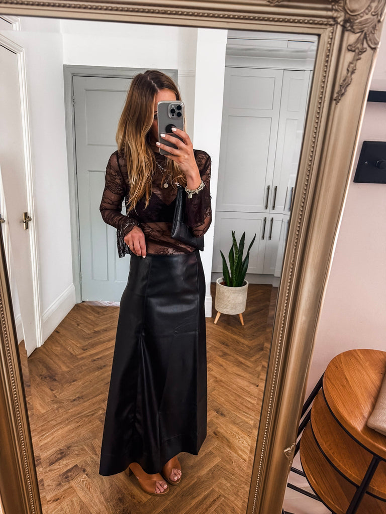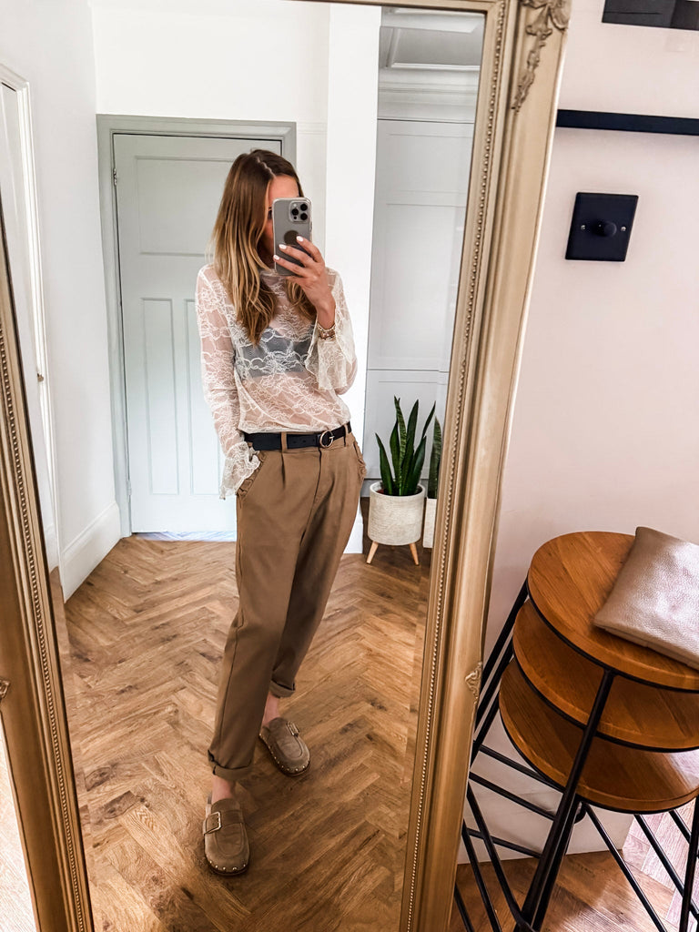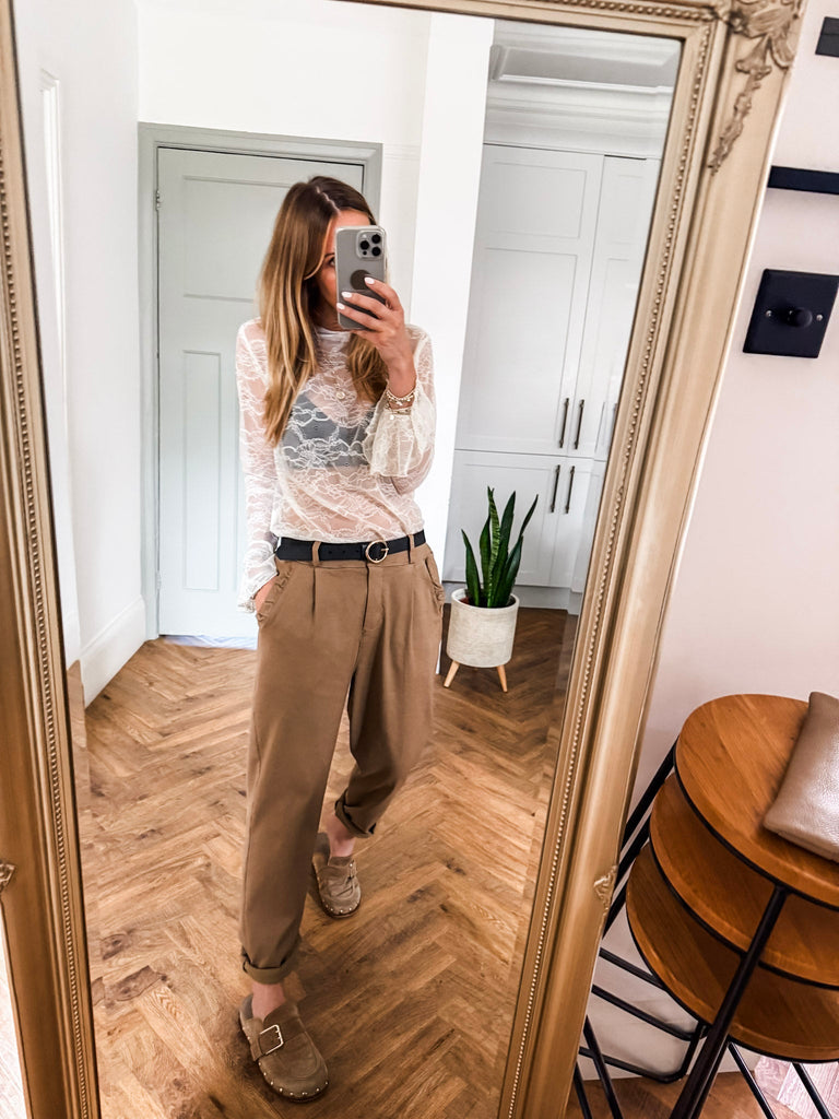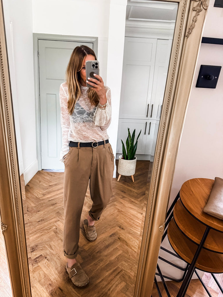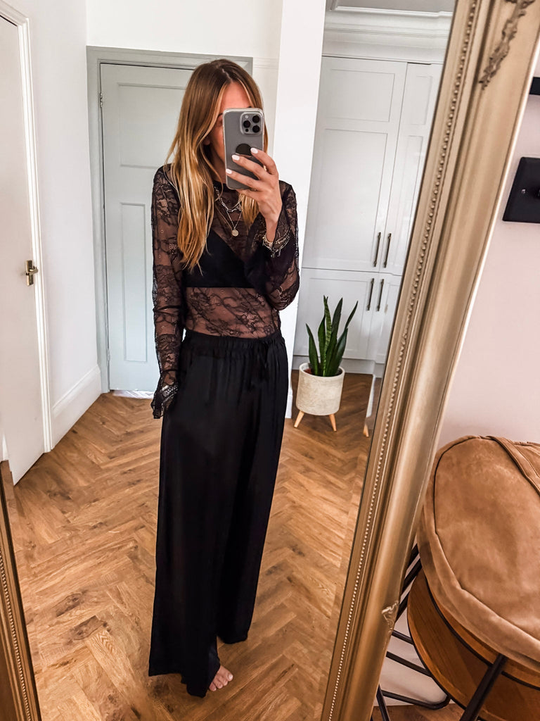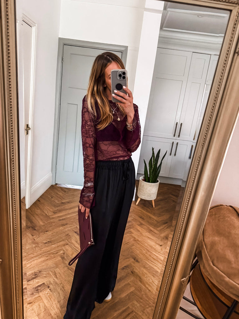 Style your look with this Bell Sleeve Lace Top, featuring a high crew neck and flowing sleeves for an effortlessly feminine feel. Crafted from delicate lace in a relaxed fit, it blends softness with subtle edge. The perfect piece to add texture and charm to any outfit.