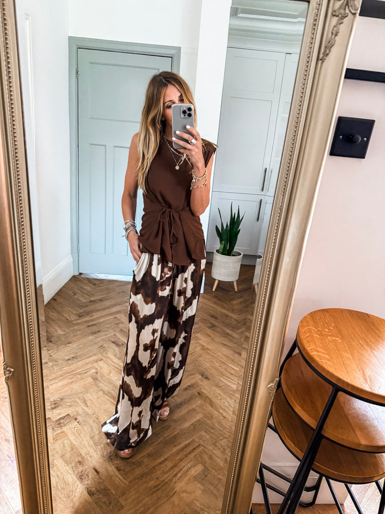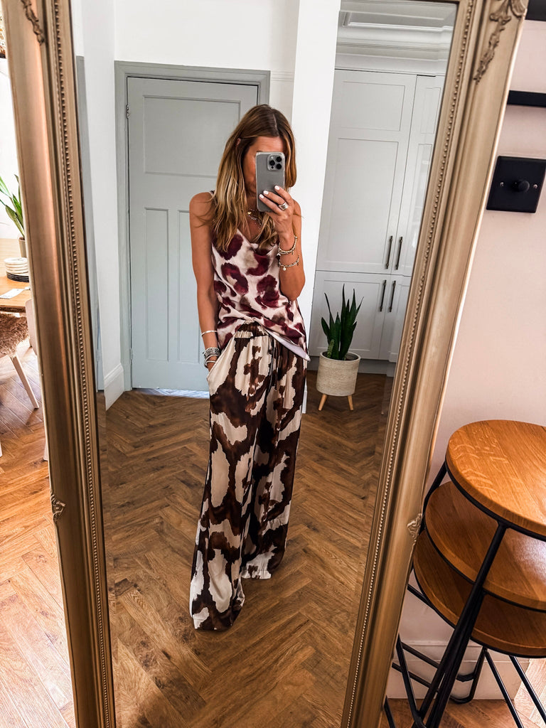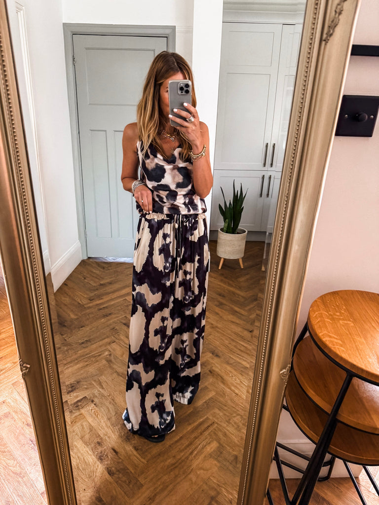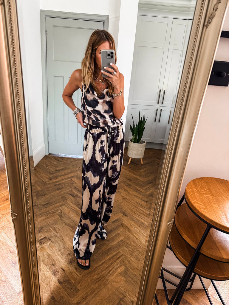 We love these trousers for their bold print, luxe satin feel, and effortlessly flattering fit. The wide-leg silhouette moves beautifully, while the elasticated waist keeps things comfortable and easy. They’re the perfect blend of statement and ease—ideal for dressing up or down.