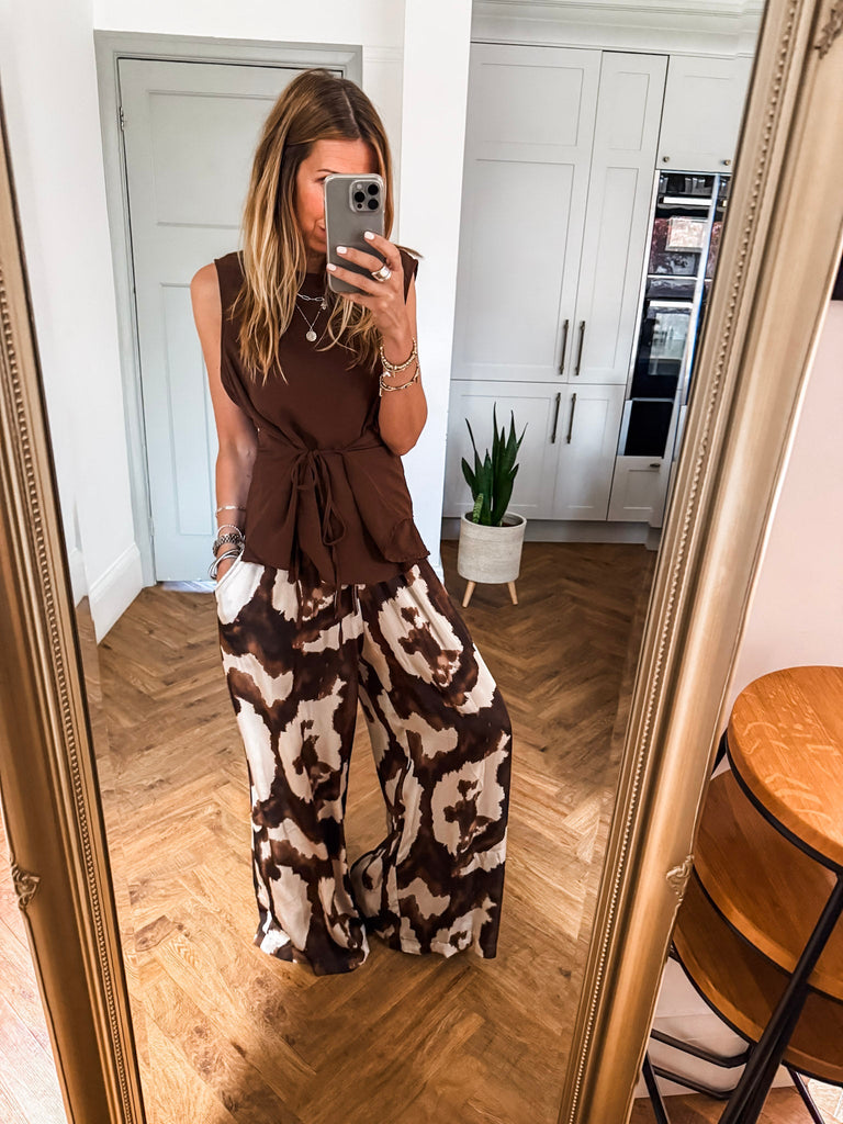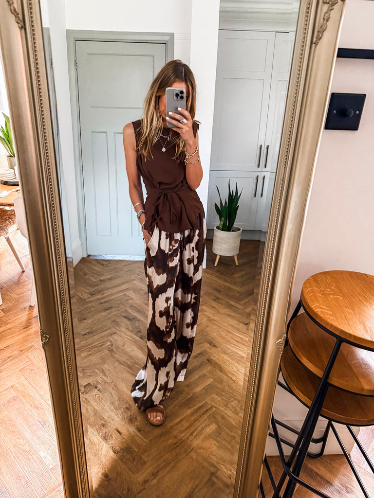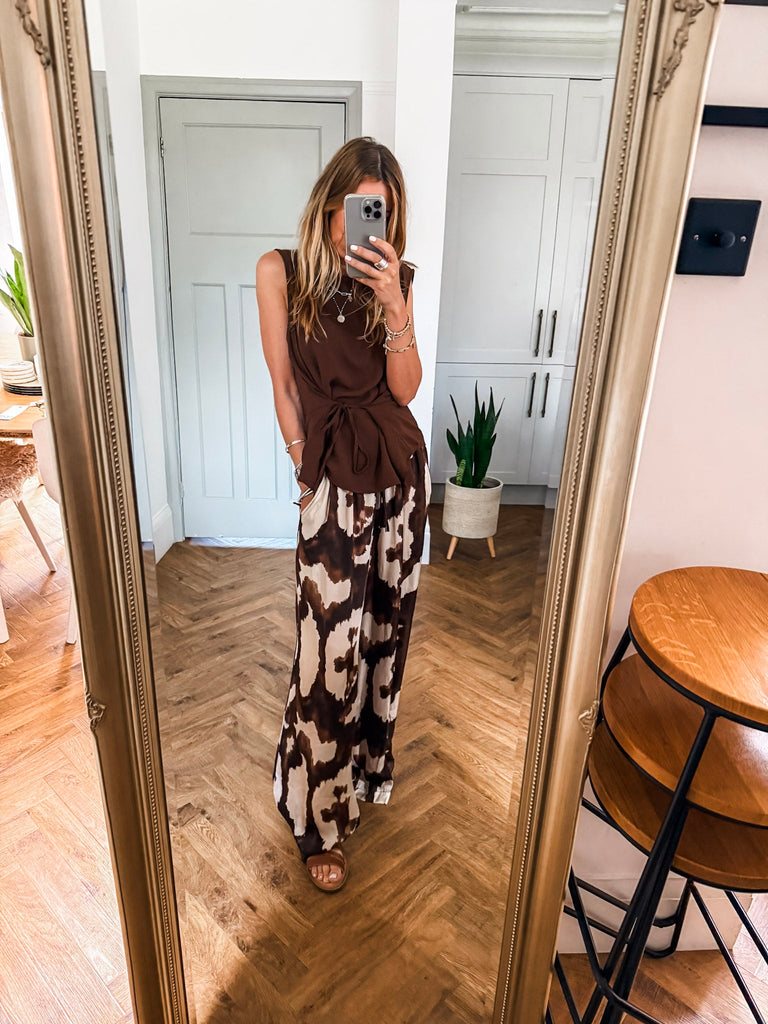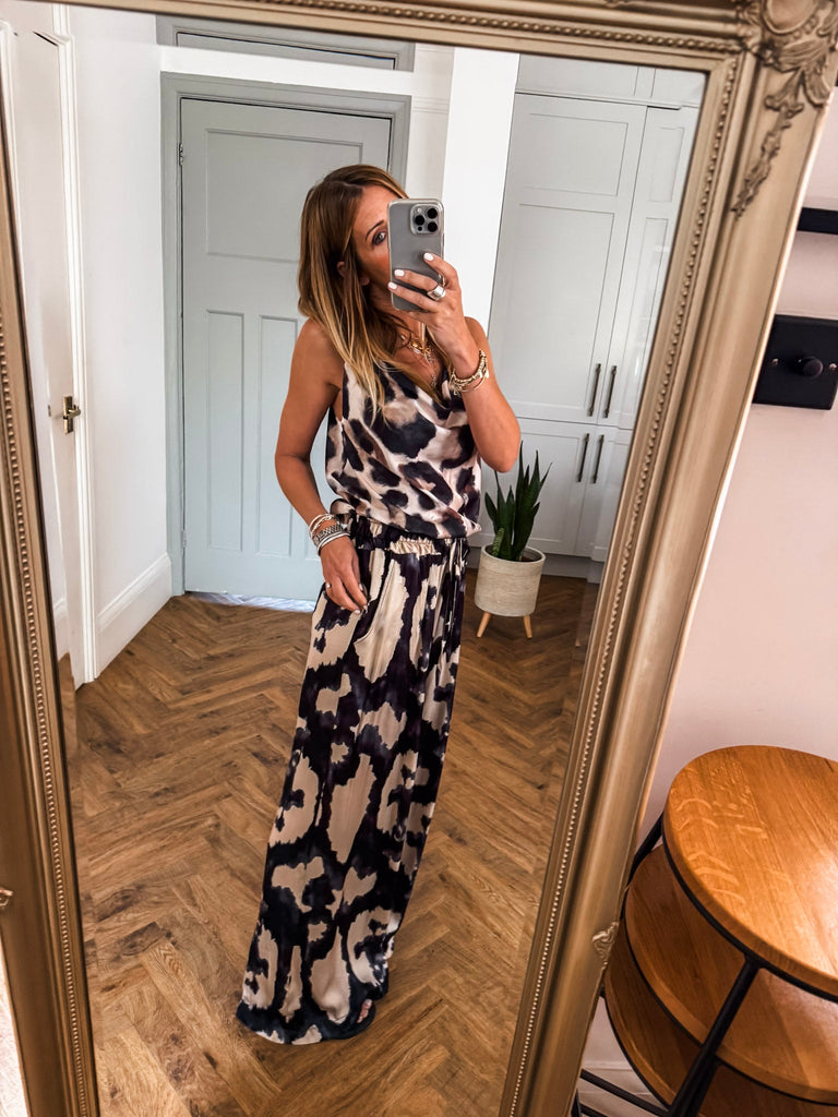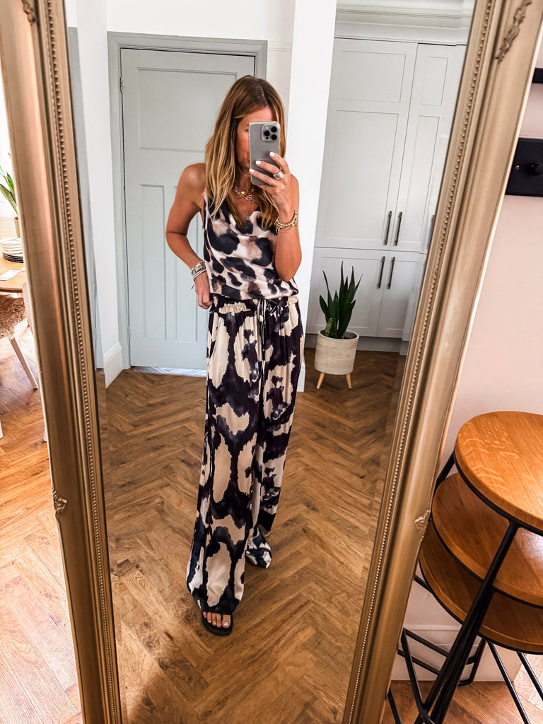 We love these trousers for their bold print, luxe satin feel, and effortlessly flattering fit. The wide-leg silhouette moves beautifully, while the elasticated waist keeps things comfortable and easy. They’re the perfect blend of statement and ease—ideal for dressing up or down.