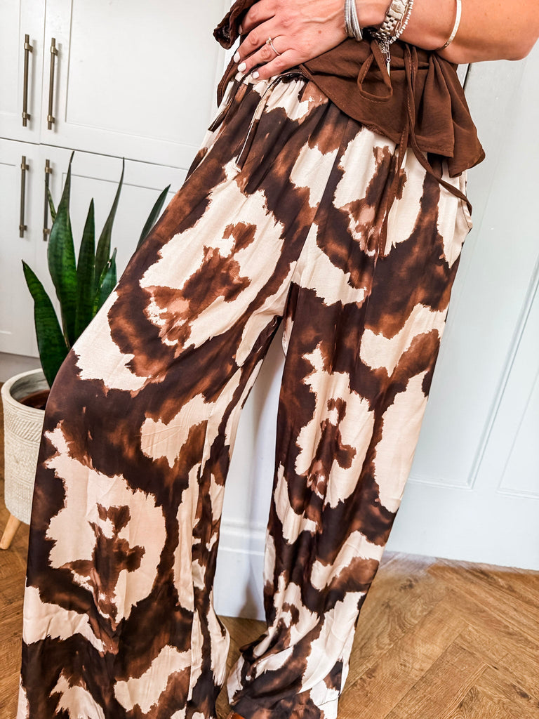 Make a statement in these abstract animal print trousers, featuring a bold pattern and sleek satin finish. The wide-leg cut and elasticated waist offer all-day comfort with a flattering flow. Finished with practical pockets, they’re your go-to for effortless style from day to night.