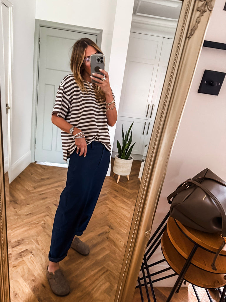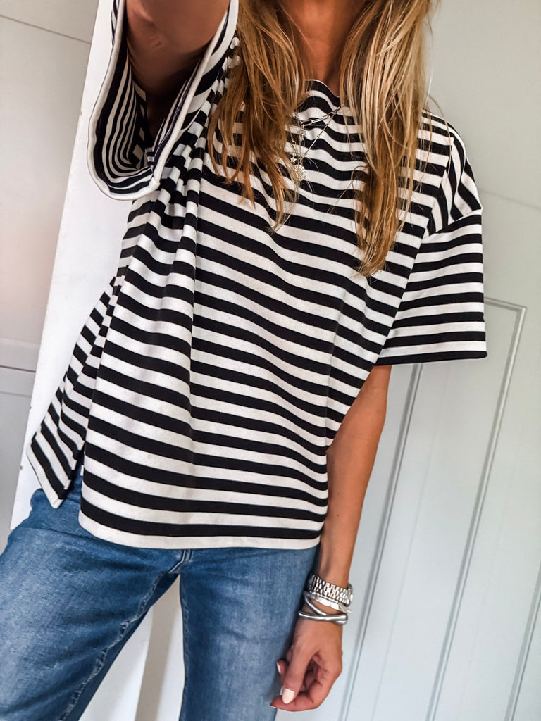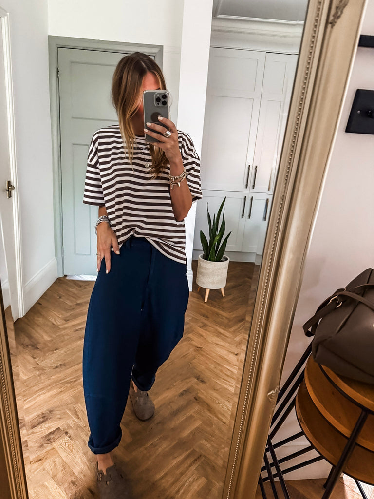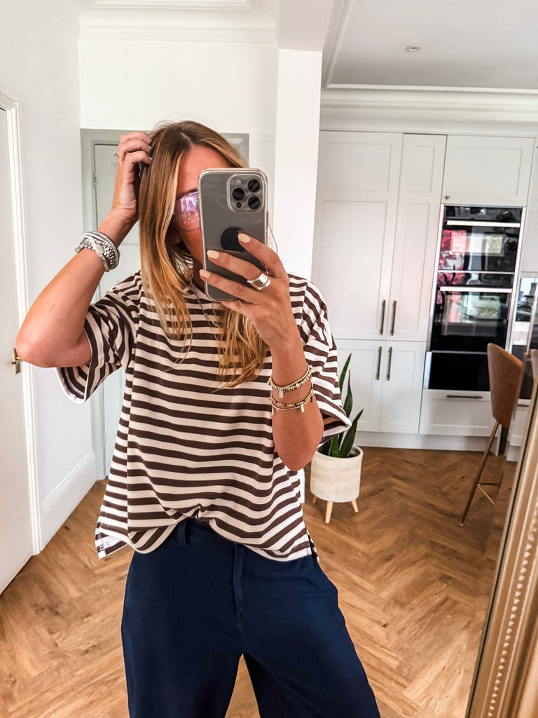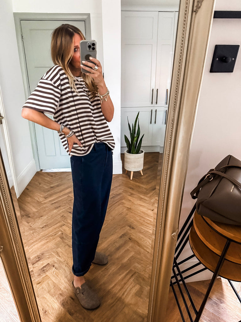 Our bestselling FIKA Super Soft T Shirt is back! Now available in a beautiful brown and cream stripe. After multiple sell-outs, this slow fashion favourite returns in a fresh new shade, ready to become your most-worn piece for seasons to come.Crafted from premium, heavier-weight jersey fabric, Sara is loved for her super-soft feel, flattering fit, and versatile design. The classic stripe and relaxed A-line silhouette create a polished yet effortless look that suits every body shape and style.Made using surplus fabrics, this piece gives new life to quality materials that would otherwise go to waste.