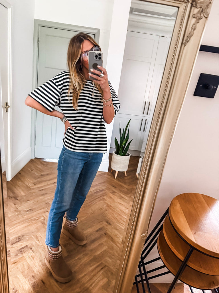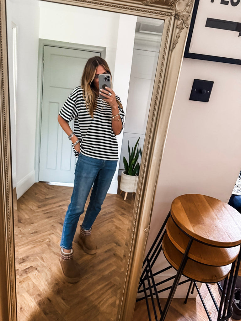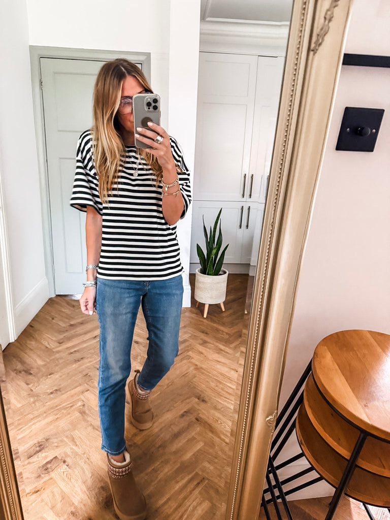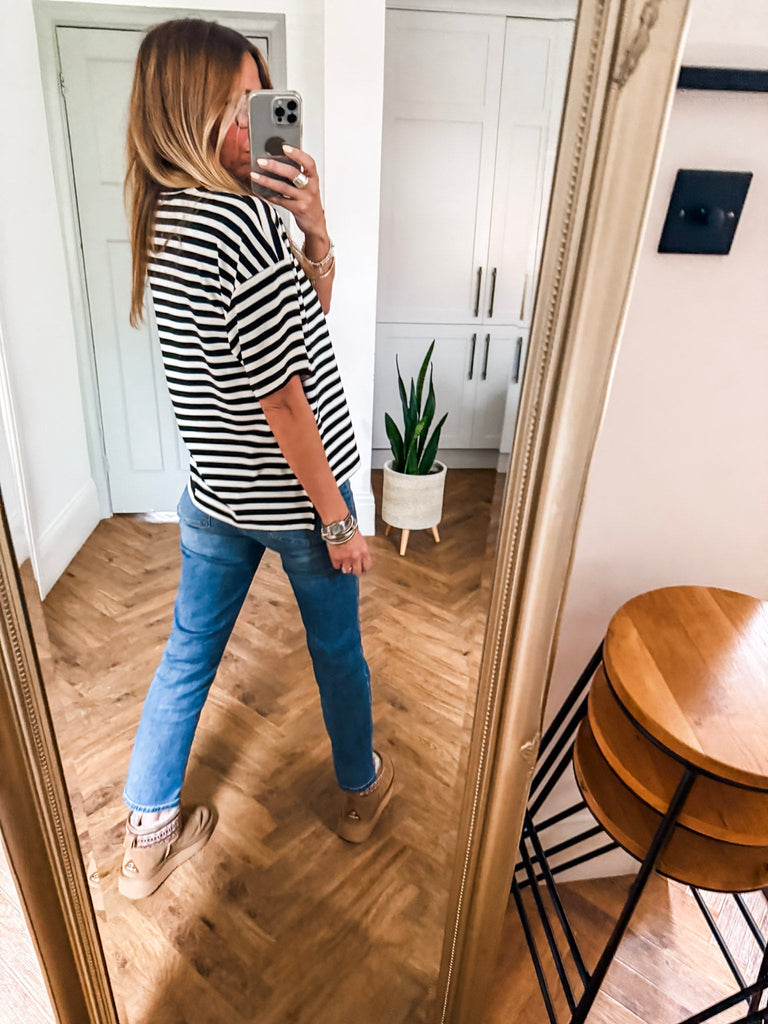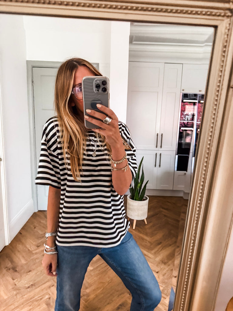 Our bestselling FIKA Super Soft T Shirt is back! Now available in a beautiful brown and cream stripe. After multiple sell-outs, this slow fashion favourite returns in a fresh new shade, ready to become your most-worn piece for seasons to come.Crafted from premium, heavier-weight jersey fabric, Sara is loved for her super-soft feel, flattering fit, and versatile design. The classic stripe and relaxed A-line silhouette create a polished yet effortless look that suits every body shape and style.Made using surplus fabrics, this piece gives new life to quality materials that would otherwise go to waste.
