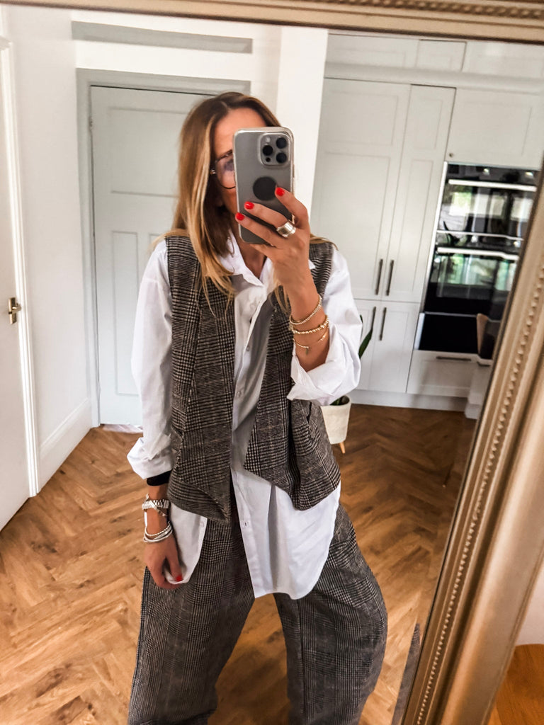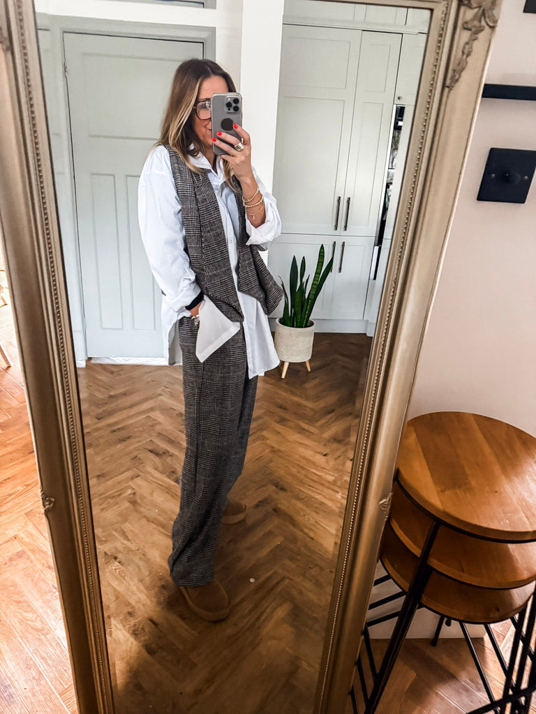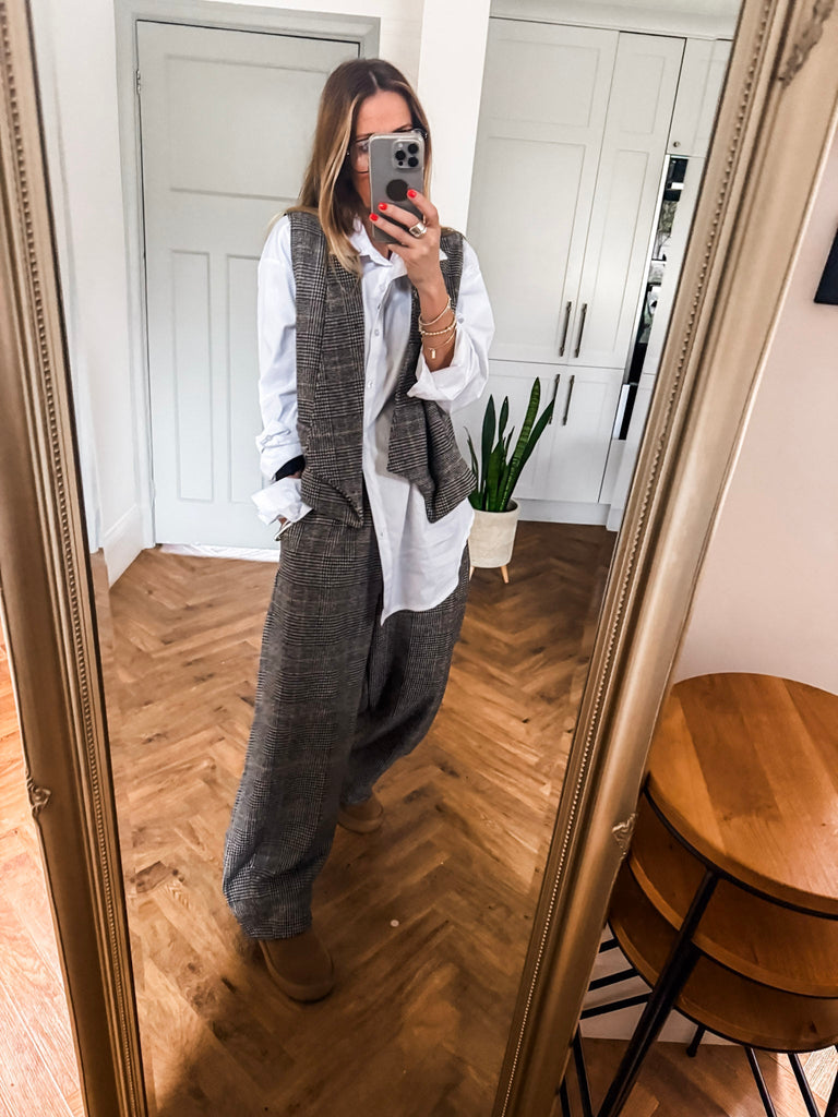 We love how the wide-leg cut brings easy movement while the dogtooth pattern adds instant cool. The adjustable waistband gives you a comfy, tailored feel without any fuss. They’re the kind of trousers that make every outfit look effortlessly put together.
