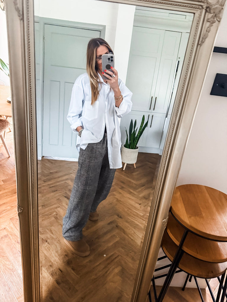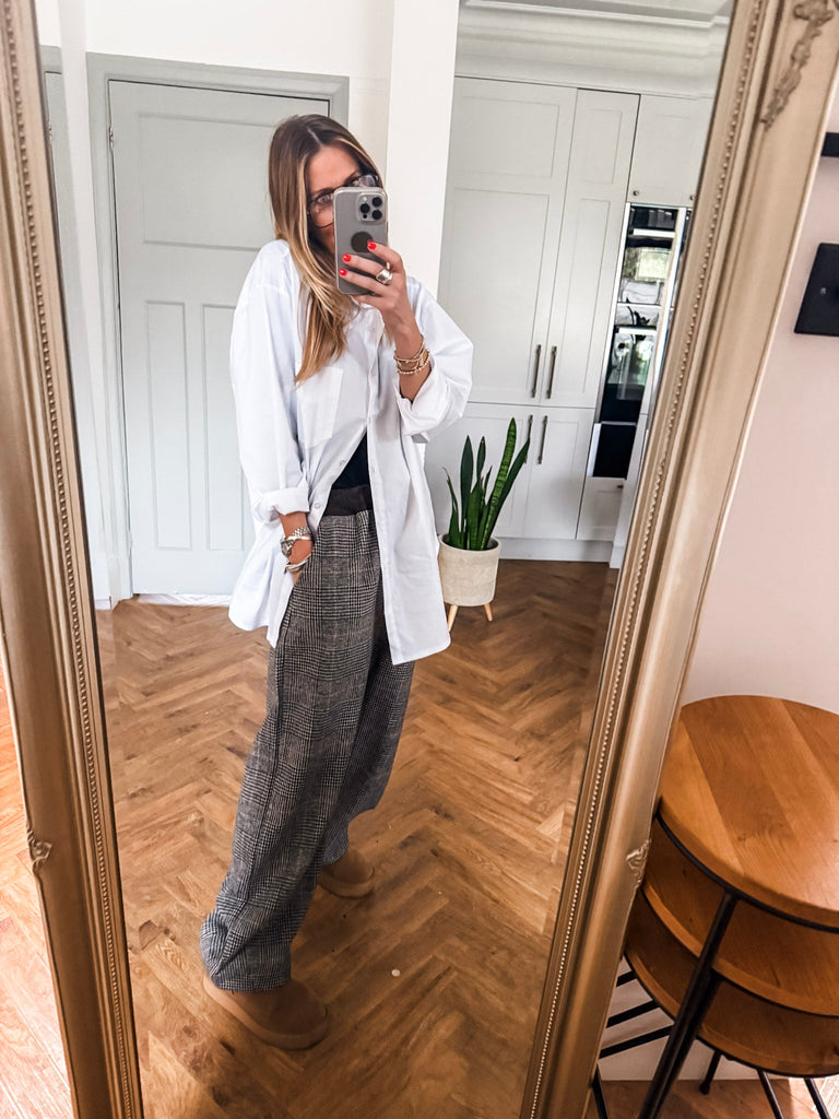 Wear them with a fitted top or sleek turtleneck to balance the relaxed wide leg. Elevate the vibe with pointed boots or keep it casual with chunky trainers. Finish with an oversized blazer for effortlessly polished style.