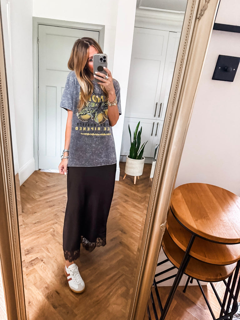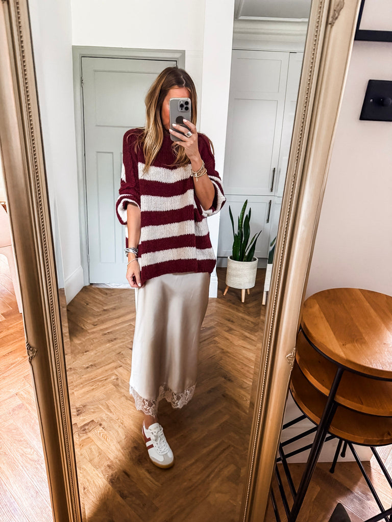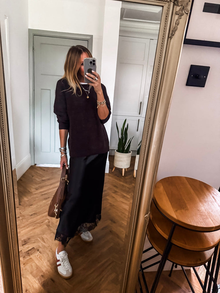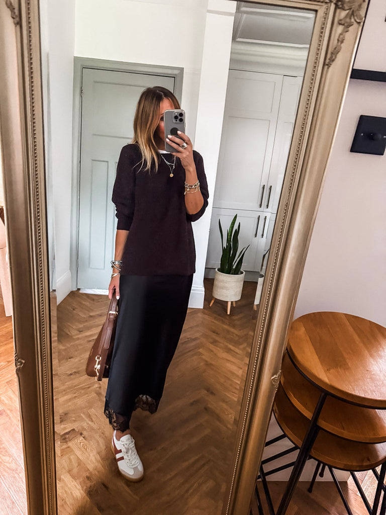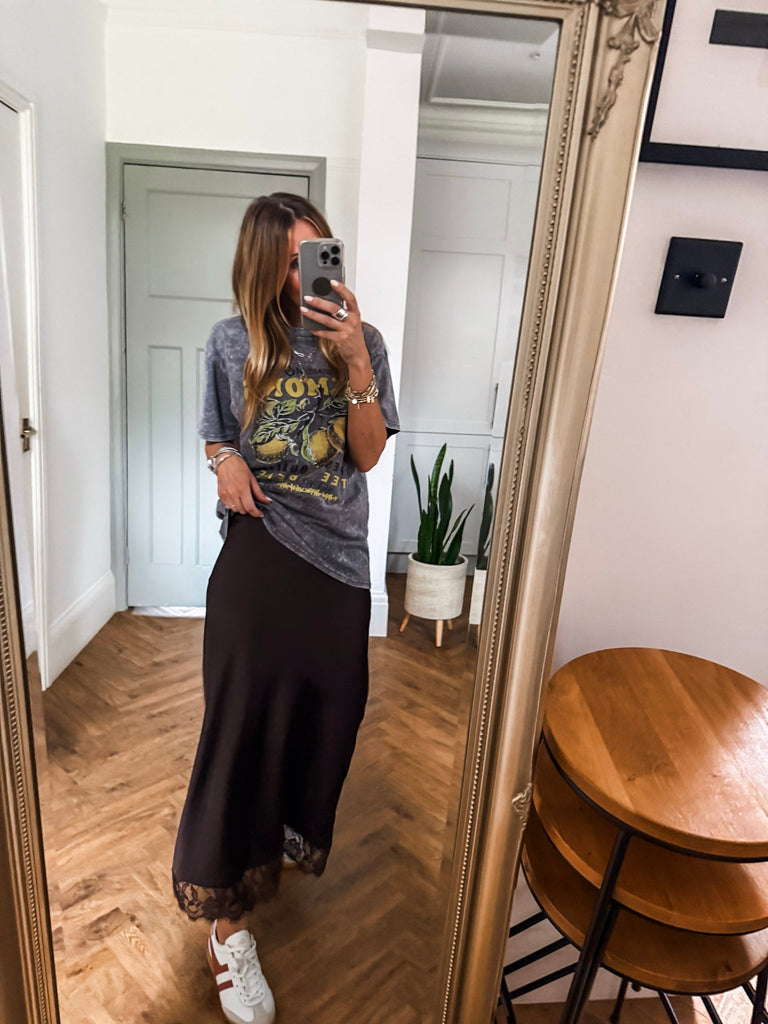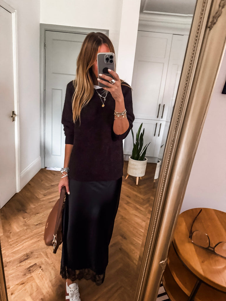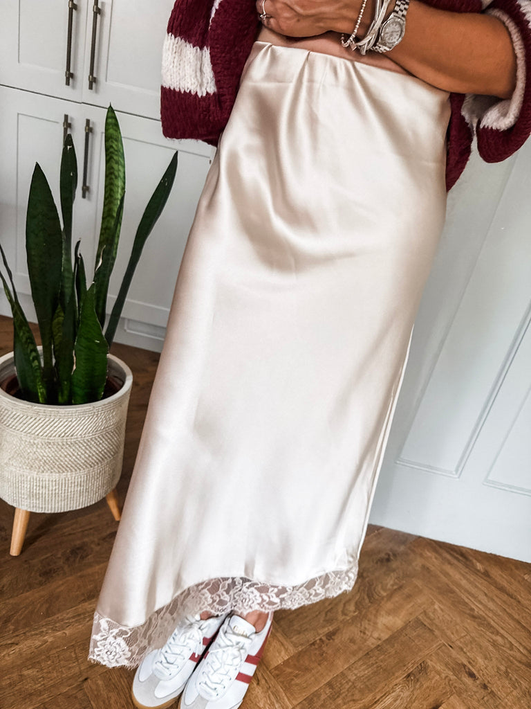 Stay effortlessly chic with our Satin Lace Skirt, crafted from luxurious satin with an elasticated waist for a comfortable fit. The elegant midi length adds a touch of sophistication to any outfit. Perfect for any occasion, it’s a must-have piece for a polished, stylish look with lace trim!