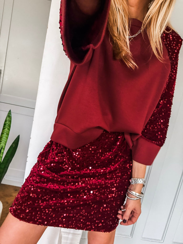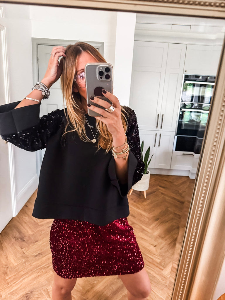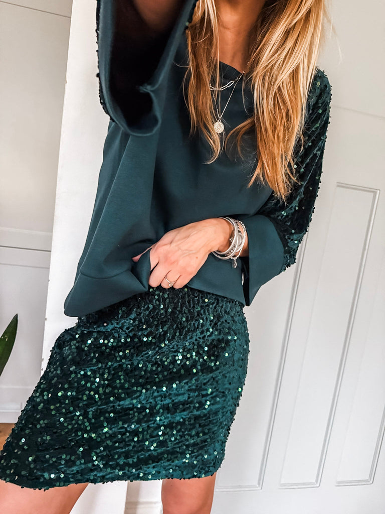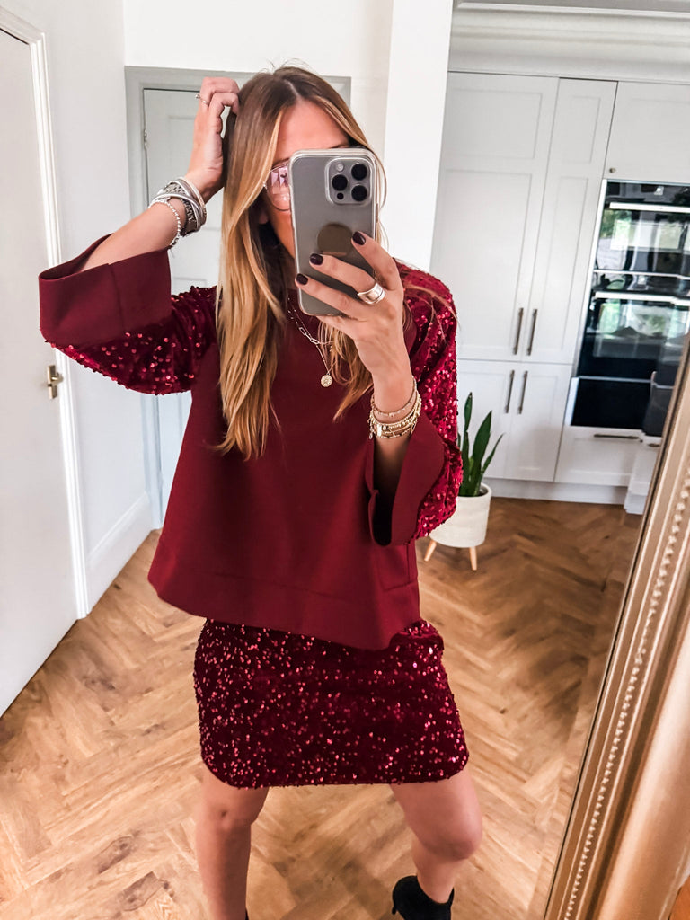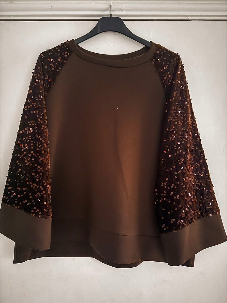 Turn heads in this Sequin Sleeve Cropped Sweatshirt—where laid-back comfort meets statement sparkle. Crafted from soft sweat fabric with sequin-detailed sleeves, it’s the perfect blend of cosy and bold. Effortlessly cool, whether worn solo or layered for impact.