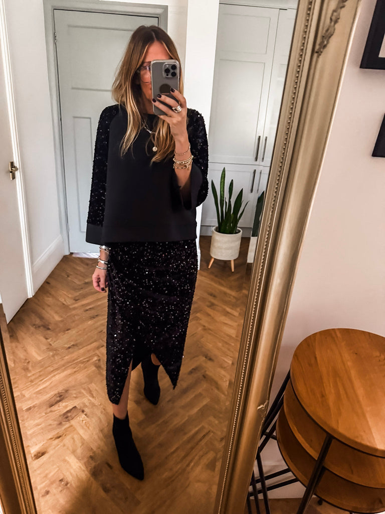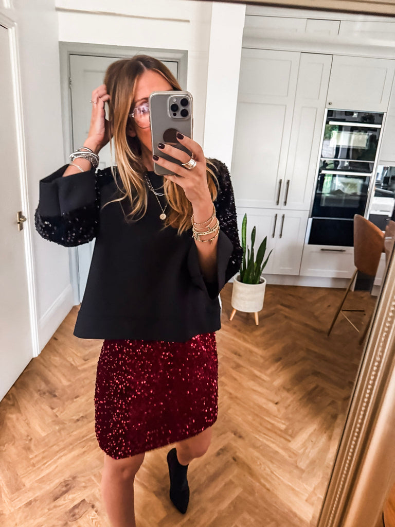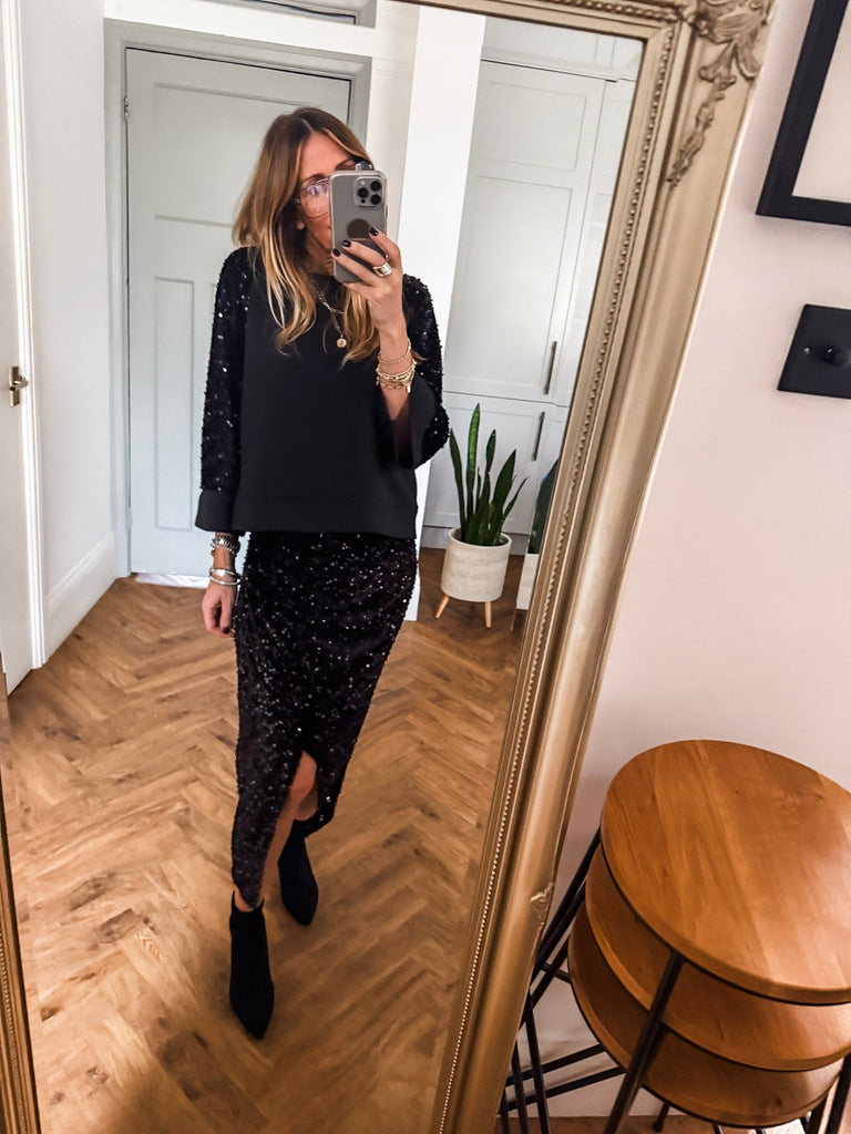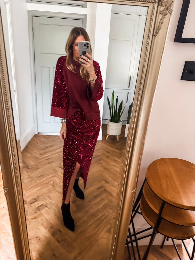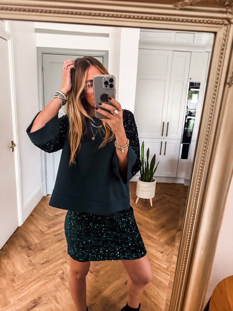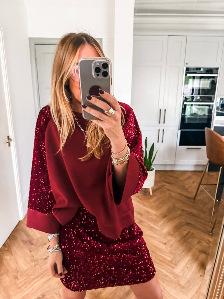 Turn heads in this Sequin Sleeve Cropped Sweatshirt—where laid-back comfort meets statement sparkle. Crafted from soft sweat fabric with sequin-detailed sleeves, it’s the perfect blend of cosy and bold. Effortlessly cool, whether worn solo or layered for impact.