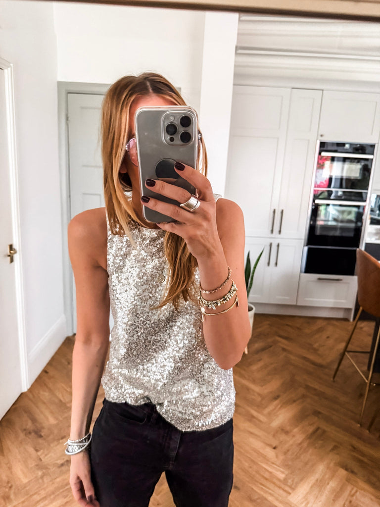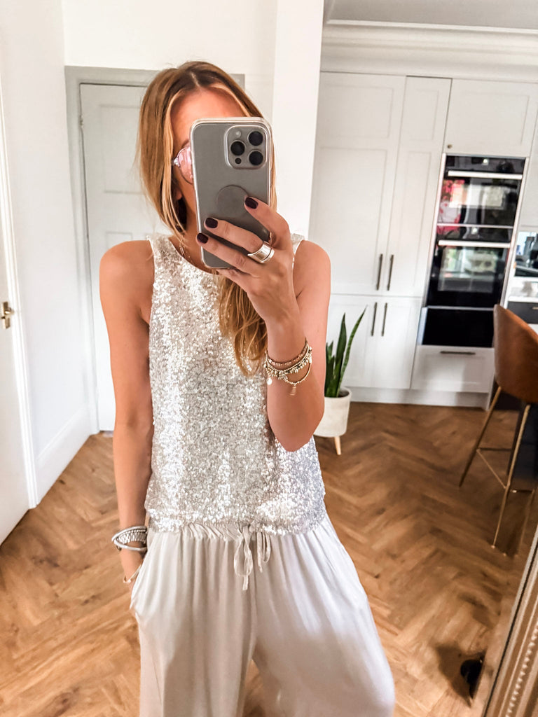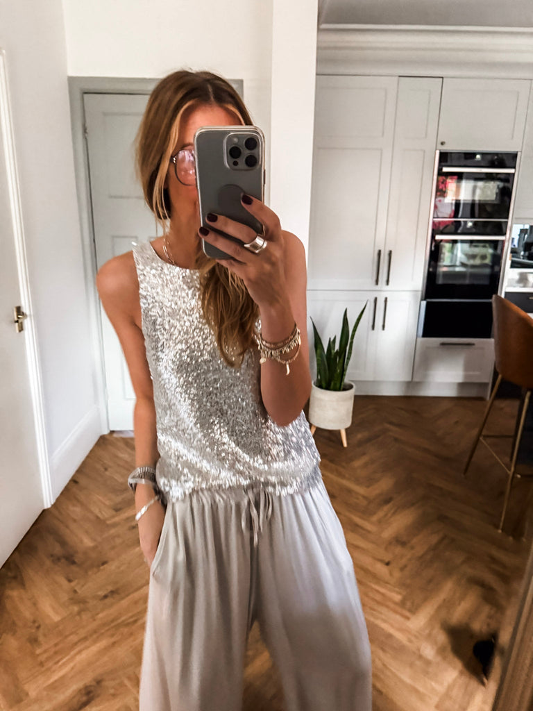 Shine in this ICHI Fauca Top , designed to catch every eye. Sleeveless, fully lined and a flattering round neckline, scoop back. It blends comfort with bold style. Perfect for nights out, festivals, or any moment you want to make a statement.