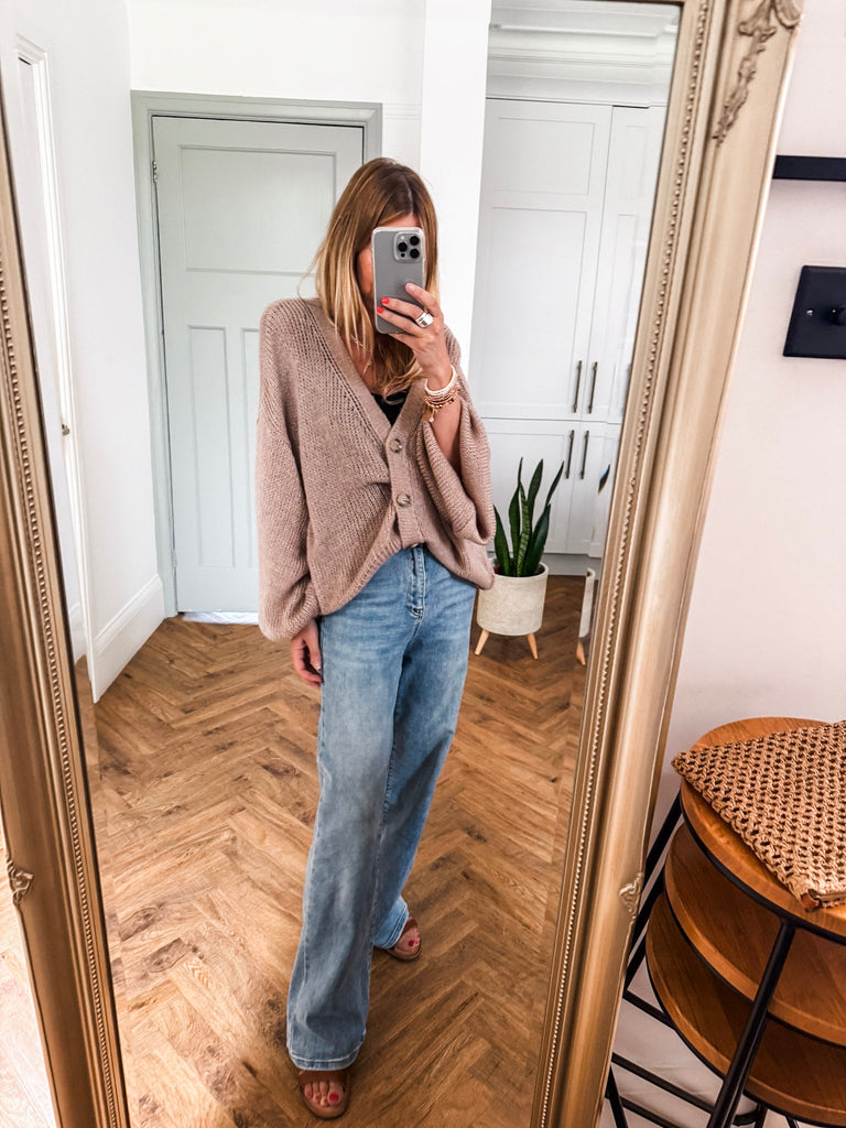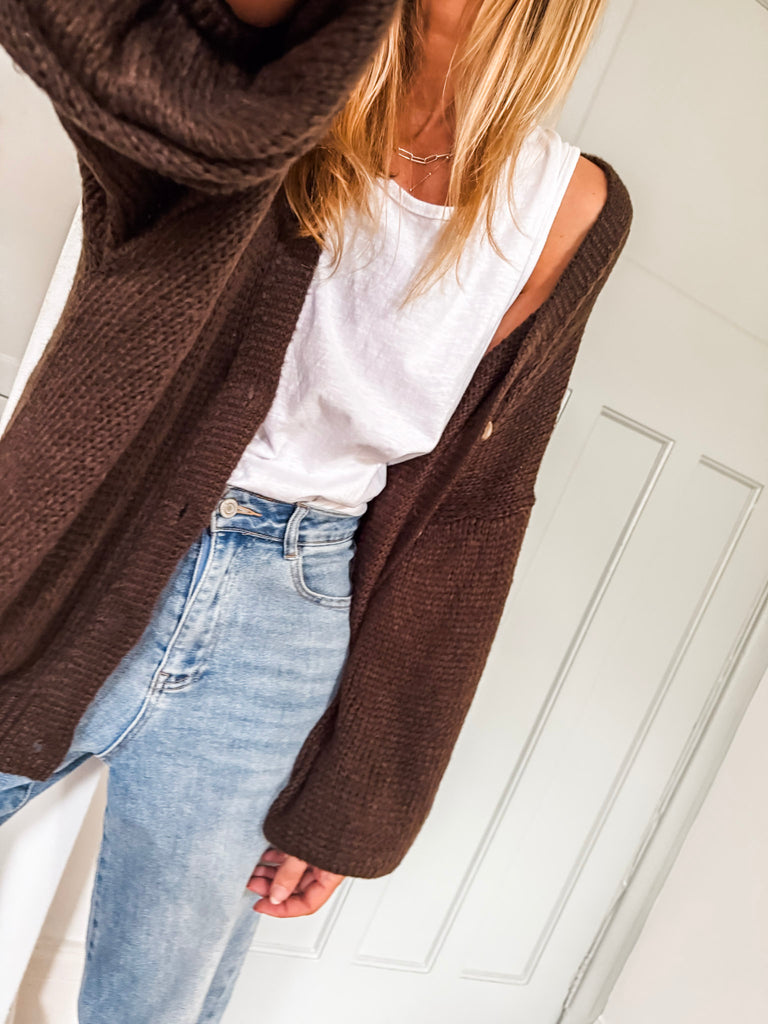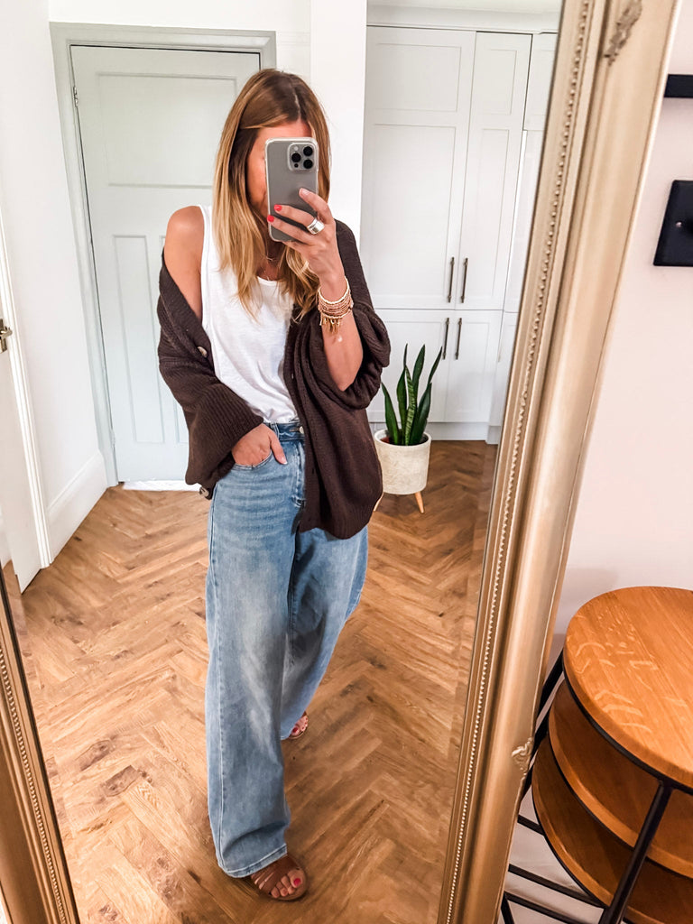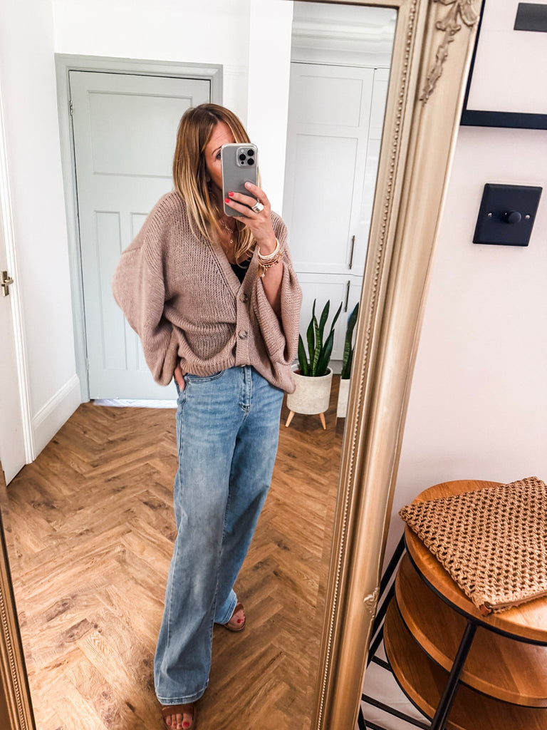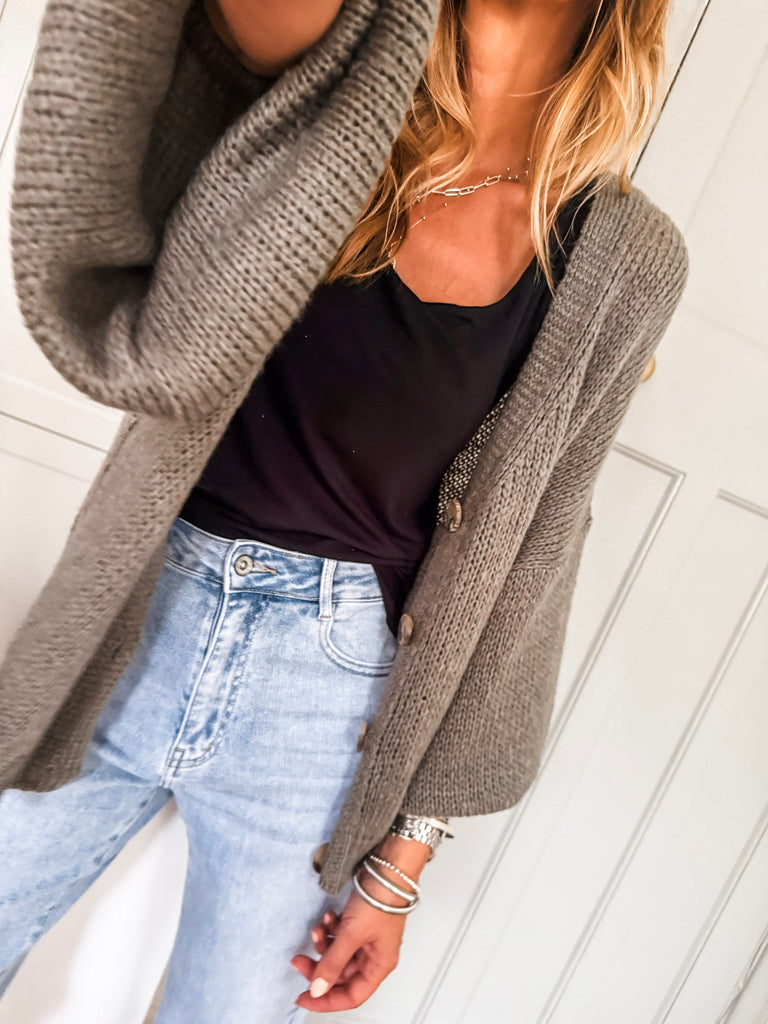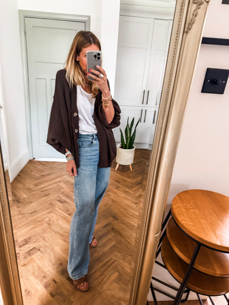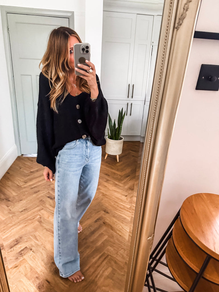 Layer the Balloon Sleeve Button Cardigan over a fitted tank and wide-leg jeans for a relaxed, on-trend look. Wear it buttoned up with a midi skirt and boots for an elevated everyday outfit. Add bold earrings or a structured bag to complete the vibe.