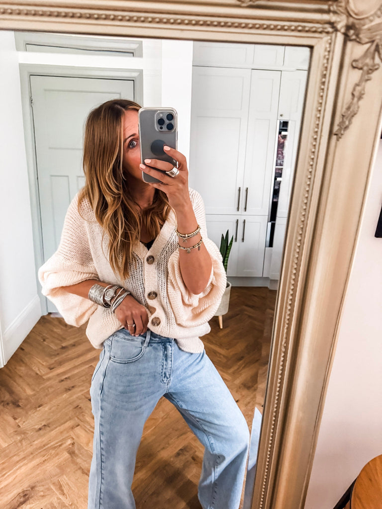 You’ll love this cardigan for its perfect blend of comfort and statement style. The balloon sleeves add a modern edge, while the relaxed fit makes it easy to wear all day. It’s a versatile piece that instantly elevates your everyday wardrobe.
