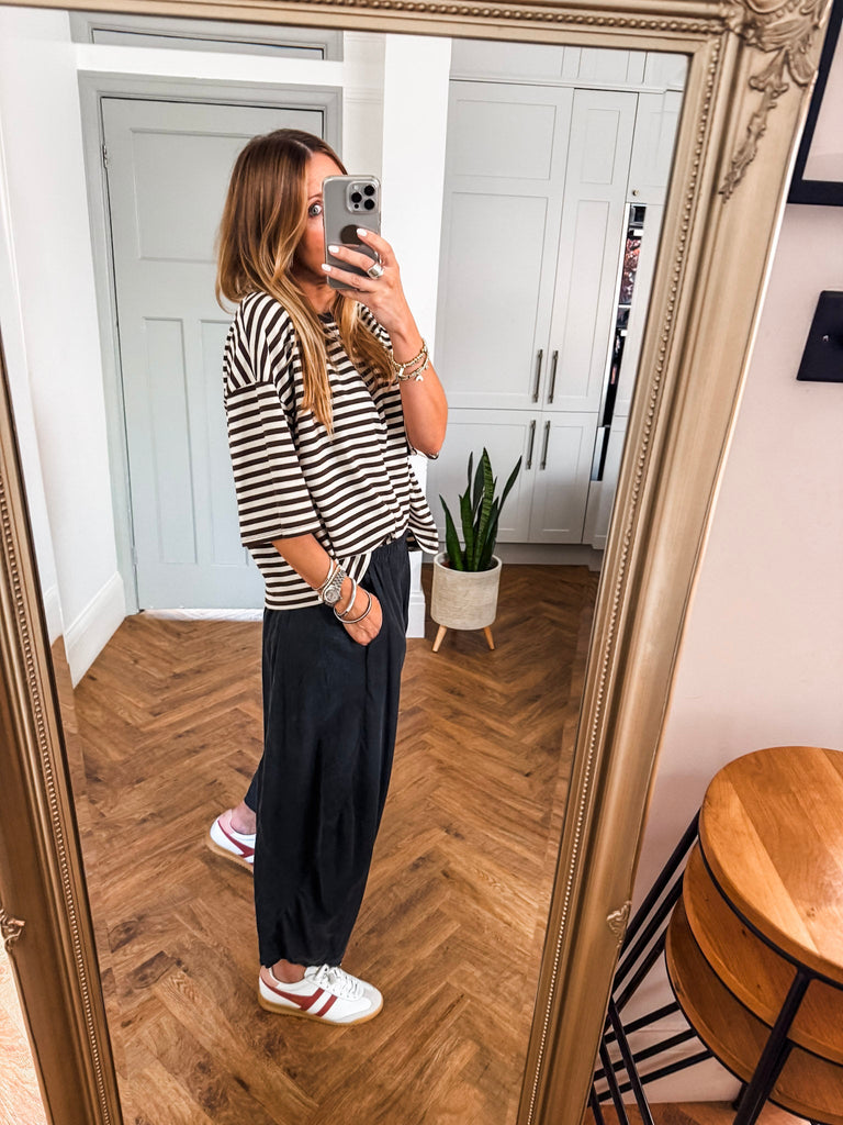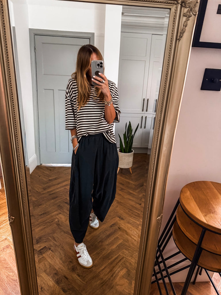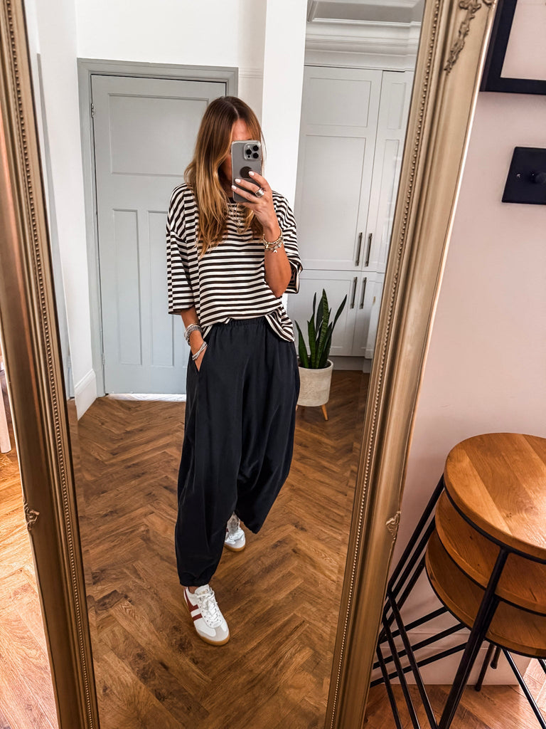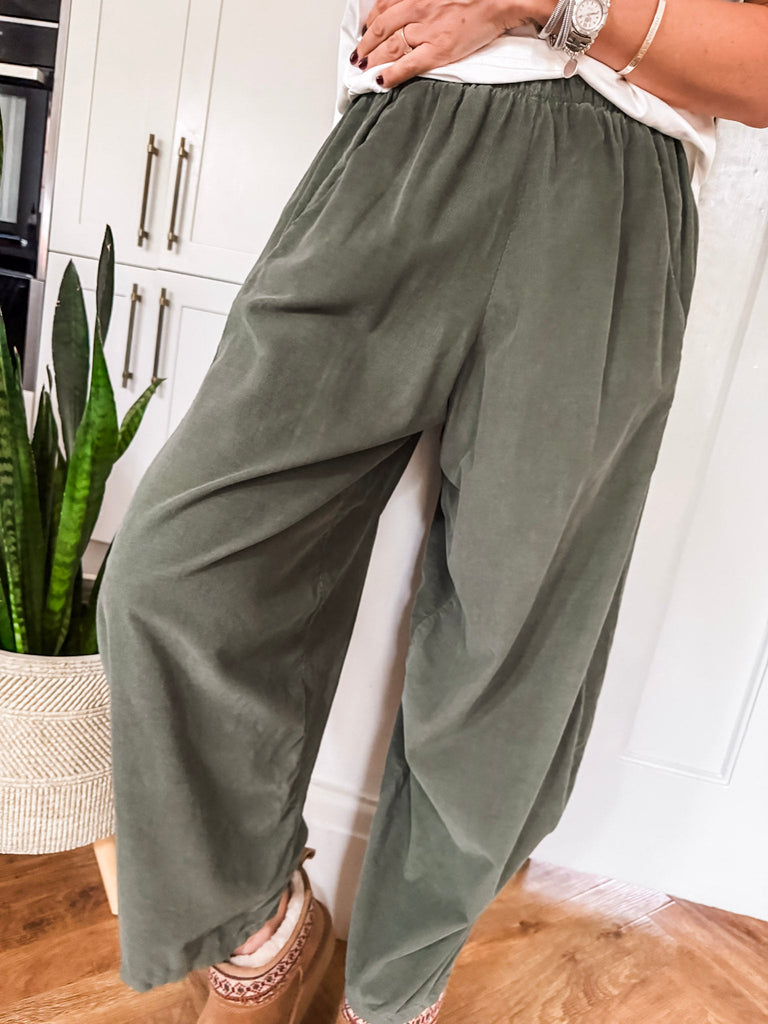 If you love our Balloon trousers you'll love these! Dress your style with our Cord Balloon Trousers, crafted from 100% cotton for ultimate comfort. Featuring an elasticated waist and practical pockets, these wide-leg trousers blend functionality with flair. Upgrade your wardrobe with this versatile essential that adds a cool touch to any outfit.
