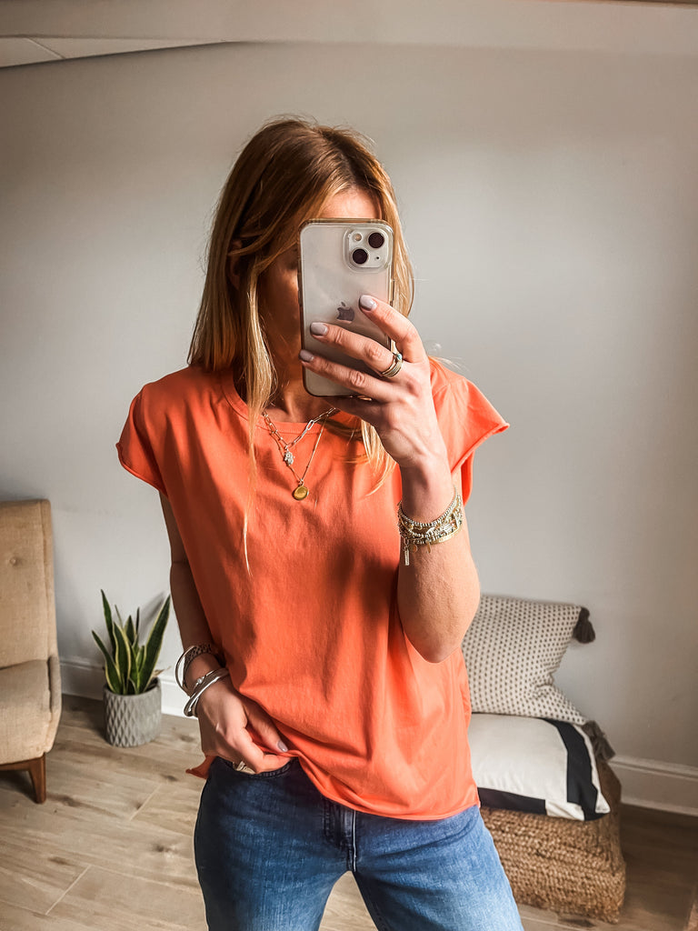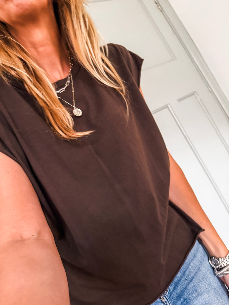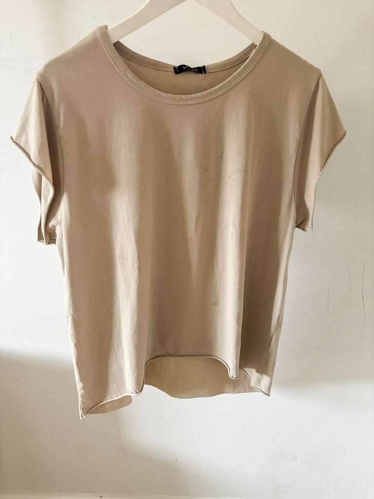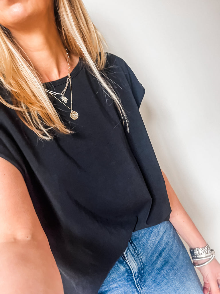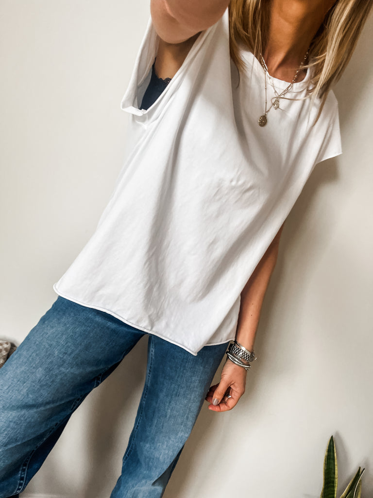 This Cap Sleeve T-Shirt is an essential for any wardrobe. It has a round neck, cap sleeves, and raw edge detail that gives it a cool, casual style. Offering all-day comfort, the relaxed fit is perfect for a laid-back, everyday look.