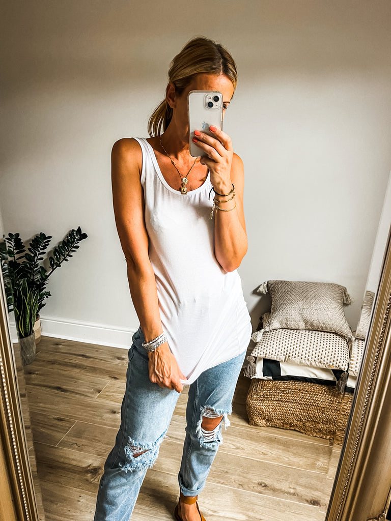 - Basic Long Line Vest: Stylish and simple, this long line vest will slot into your wardrobe with ease. It has thick straps and a scoop neck for a flattering fit.