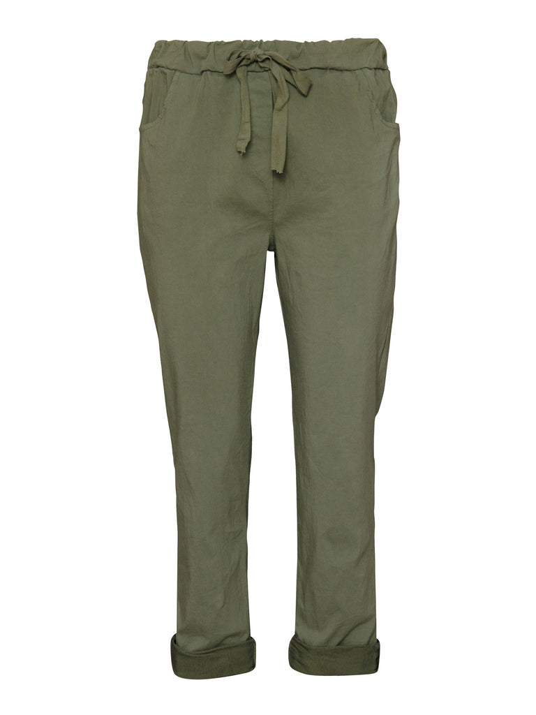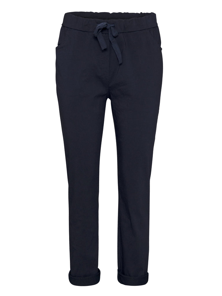 - Denim Magic Pants: The perfect more comfortable replacement to jeans. The stretchy material is designed in a tapered leg with a drawstring waistband to achieve the perfect fit.