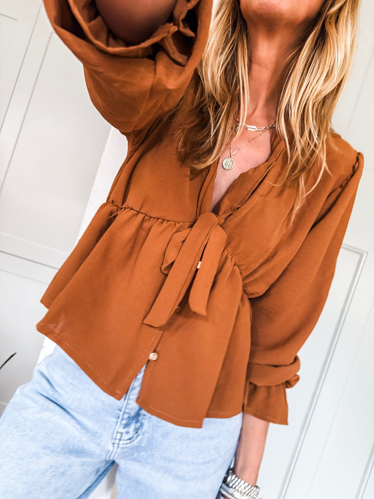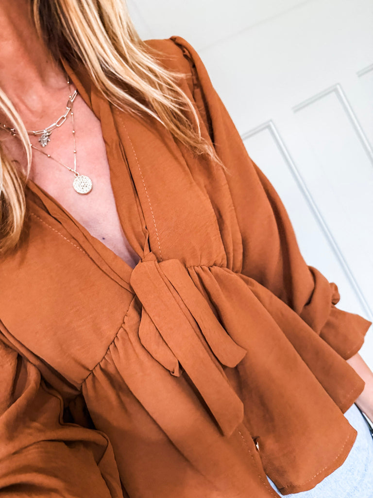 This is a gorgeous style! Turn heads with our Pussy Bow Peplum Blouse—where elegance meets attitude. The statement bow, flirty frill sleeves, and tailored peplum shape create a bold, feminine silhouette. Polished button details complete the look, perfect for owning any room with effortless confidence.